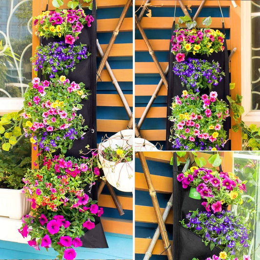 KAHEIGN 7 Bolsillos Colgante Bolsas De Cultivo De Plantas, Colgante Vertical Jardinera De Pared De Jardín Bolsa De Maceta para La Decoración del Hogar del Jardín del Patio (Negro)