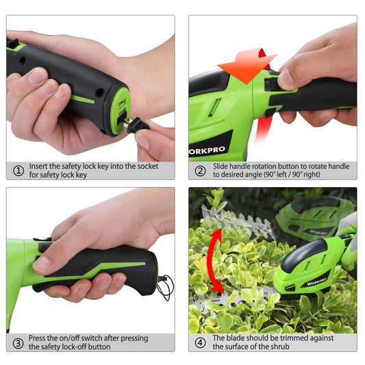 WORKPRO - Cizalla para césped con 2 Cuchillas, batería de 1500 mAh, Cargador para Corte, podado
