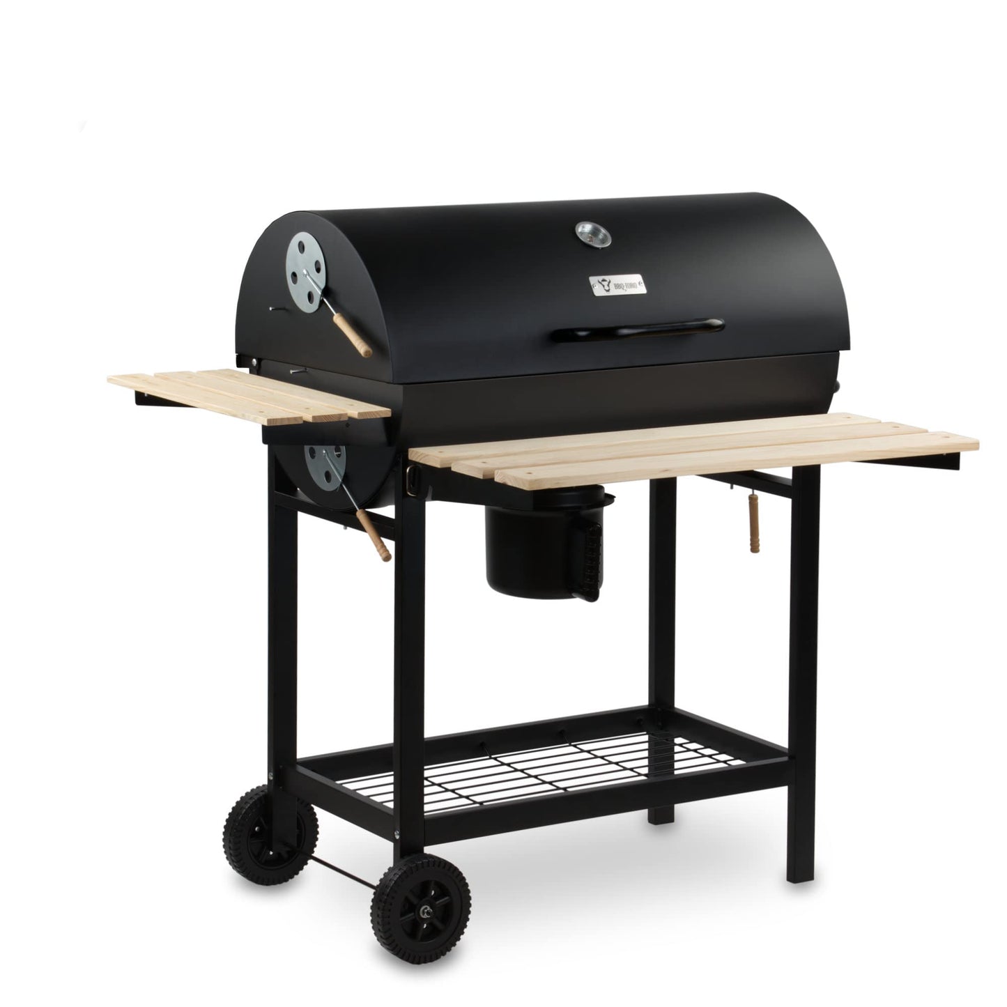 BBQ-Toro Carro de Barbacoa de Carbón Premium | Ø 42 x 80 cm | Ahumador Móvil | Parrilla de Barbacoa con Tapa | Con Mesas Laterales de Madera