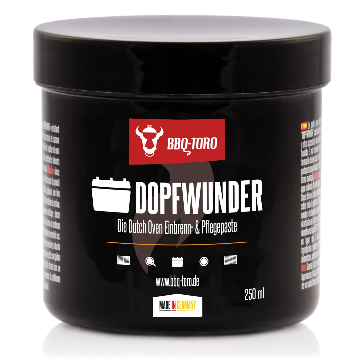 - EL MEJOR CUIDADO: la pasta de limpieza, mantenimiento y curado de BBQ-Toro "DOPFWUNDER" cuida los hornos holandeses y otros accesorios de hierro fundido para barbacoas. El uso regular de la pasta crea una pátina de alta calidad. La pasta protege contra la adherencia de los alimentos y la oxidación.