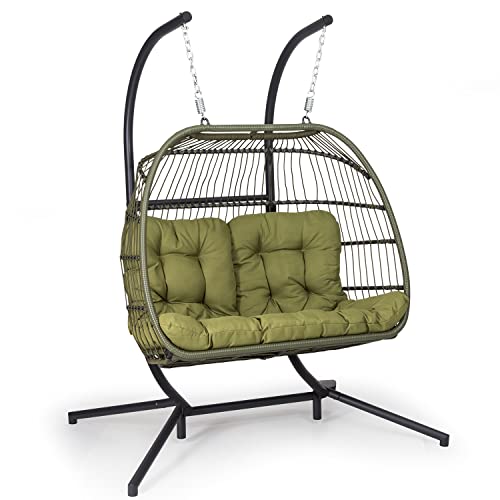 Blumfeldt Columpio Jardin Exterior Doble, Silla Colgante con Soporte para Colgar con Base para Jardín Patio y Dormitorio, Hamaca Colgante con 2 Cojines, Balancin Jardin Exterior Mimbre Resistente