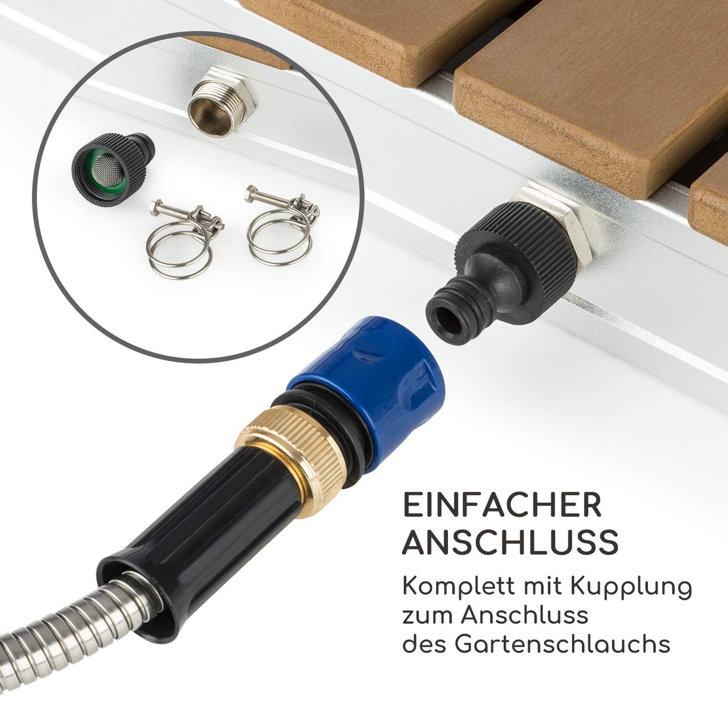 - ALTURA REGULABLE 4 M: Con la ayuda del rodillo de pie, puedes ajustar fácilmente la altura de la fuente hasta 4 metros. Tanto si deseas un chorro de agua ligero como potente. Nuestra ducha de jardín se ajusta fácilmente a tu altura.