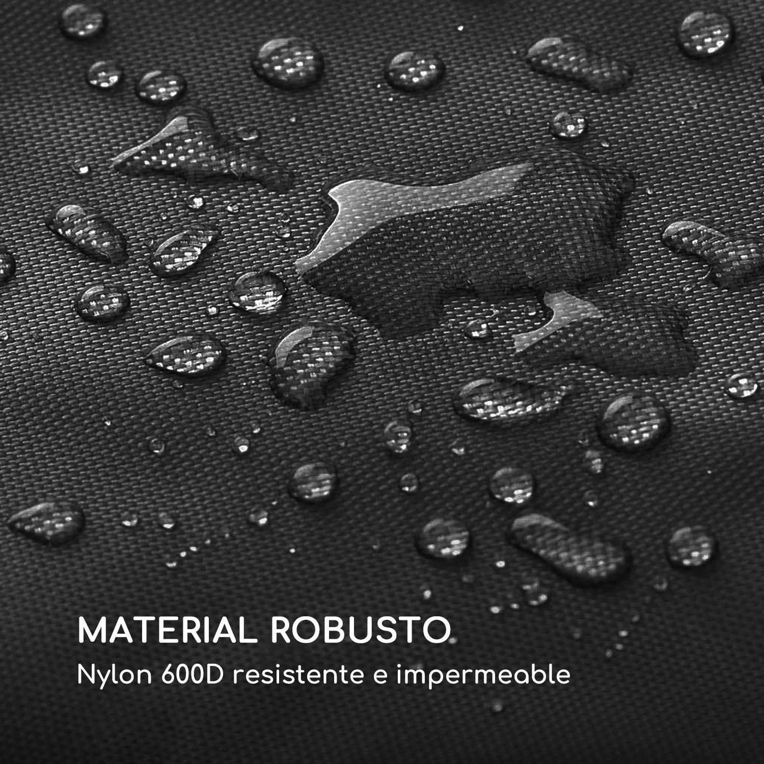 • Material sólido: nylon 600D resistente al agua y al desgarro