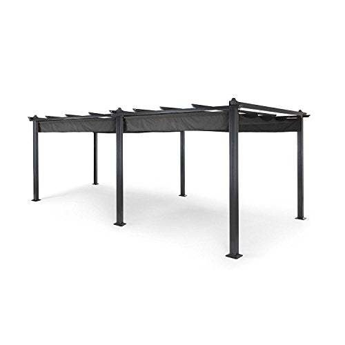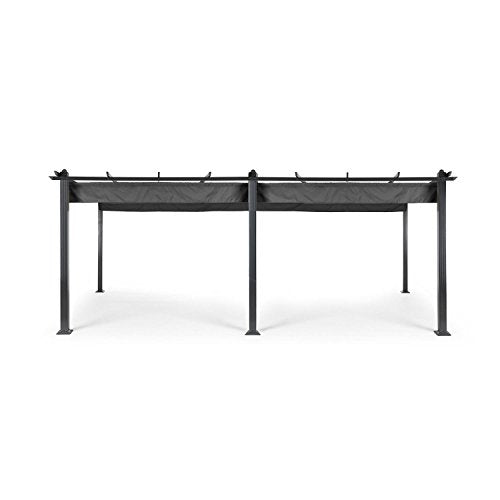 Detalles: Blumfeldt Pantheon Pergola Awnings Pérgola de Jardín, Carpa 2,95x5,95 m., Techo Impermeable y Retráctil de Poliéster Exterior, Cenador Marco Aluminio, Protección UV, Pergolas de Jardin Gris Oscuro En todas las casas siempre hay un lugar favorito donde celebrar eventos. La pérgola Blumfeldt te ofrece un espacio perfecto para celebrar comidas y cenas con familiares o amigos. Transforma espacios exteriores en espacios habitable para cualquier época del año. Tamaño de 2,95 x 5,95 metros, lo suficientemente grande como para hacer grandes celebraciones. Fácil y rápido de montar Montaje sencillo y sin complicaciones, sólo será necesario la colaboración de dos personas para poderlo montar rápidamente. Incluye los materiales necesarios para su instalación y un manual de instrucciones para facilitarte el montaje. El armazón se puede anclar en el suelo o atornillarlo para tener mayor sujeción y que soporte días de viento fuerte. Estructura de aluminio para evitar que se oxide y poderlo disfrutar durante todos los días del año. Para que lo disfrutes todo el año Lo podrás utilizar en infinidad de ocasiones gracias a su versatilidad. La apertura de los laterales es ideal para que corra el aire durante los días de calor. Techo hecho de poliéster recubierto de poliuretano totalmente repelente al agua y ofrece protección UV contra los rayos del sol. Fácil de lavar y reemplazar, en caso de que sea necesario por el paso de los años. Características del producto: - Pérgola impermeable con techo retráctil (con cable) - Robusto marco de aluminio: 10 x 10 cm / 1mm de grosor - Altura de 201 cm - Dimensiones de 295 x 230 x 595 cm - Incluye cenador (kit de montaje), material de montaje y una manual de instrucciones