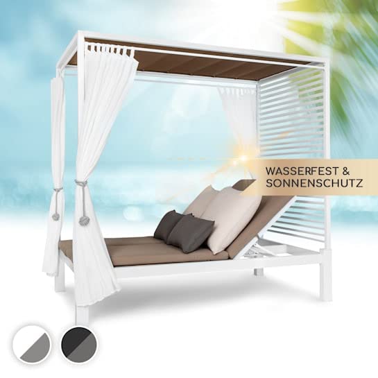blumfeldt Cama Balinesa, Tumbona Doble Jardin Exterior Regulable y Respaldo Reclinable, Cama con Techo Solar, XL Sunbeds