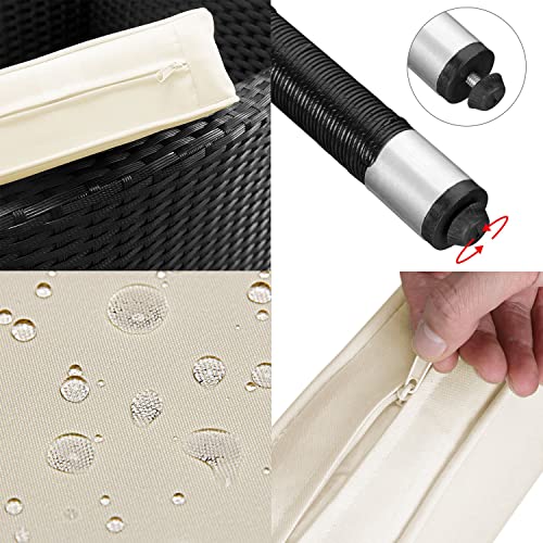 - FÁCIL CUIDADO: Los cojines son repelentes al agua, es decir los líquidos no son absorbidos y se pueden eliminar fácilmente con tan sólo pasar un paño. Otra ventaja es que las fundas de las almohadas son extraíbles y lavables. El poliratán también se limpia muy rápido y fácil.