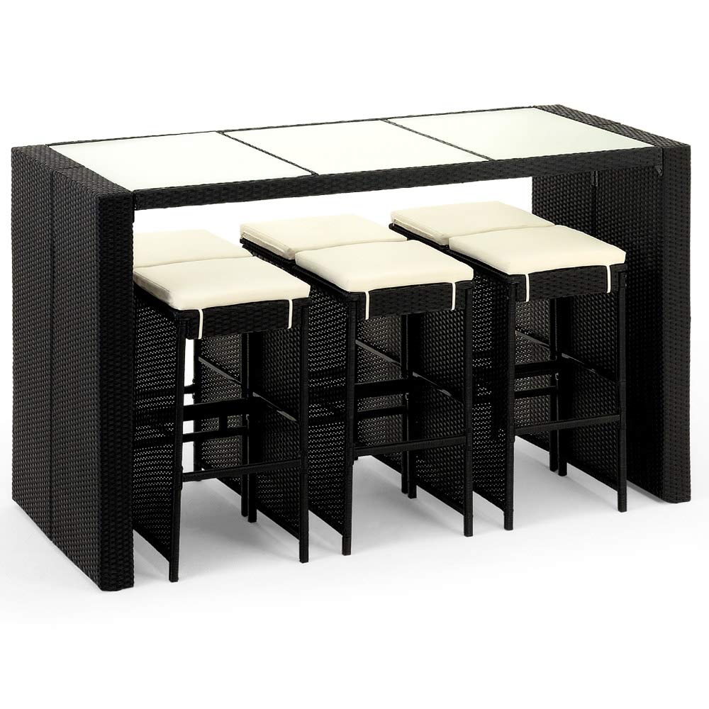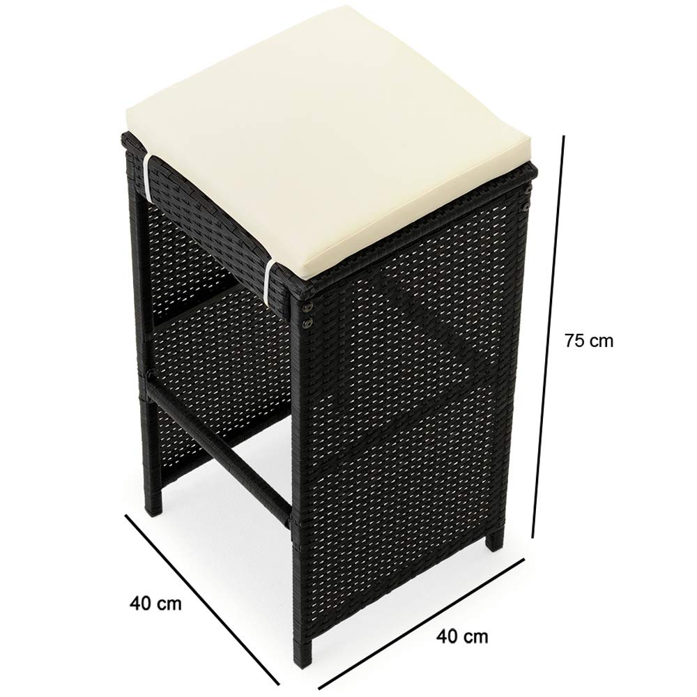 Deuba Set de Muebles de Bar poliratán 6 Taburetes de Bar con Cojines de 7cm de Grosor Conjunto de Muebles para jardín