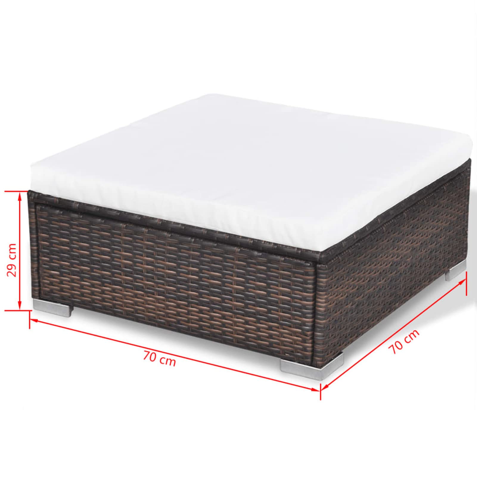 Dimensiones otomanas: 70 x 70 x 29 cm (largo x ancho x alto)