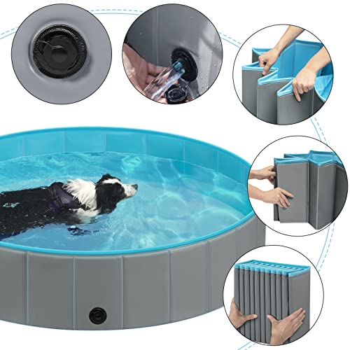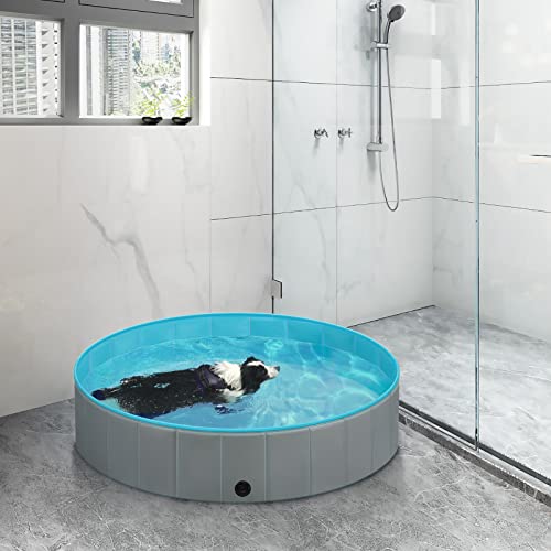 EUGAD Piscina para Perros Portátil Piscina para Mascotas Gatos Bañera Plegable para Perros Grande Antideslizante con PVC Natación Piscina para Mascotas Gris Claro 160x30cm