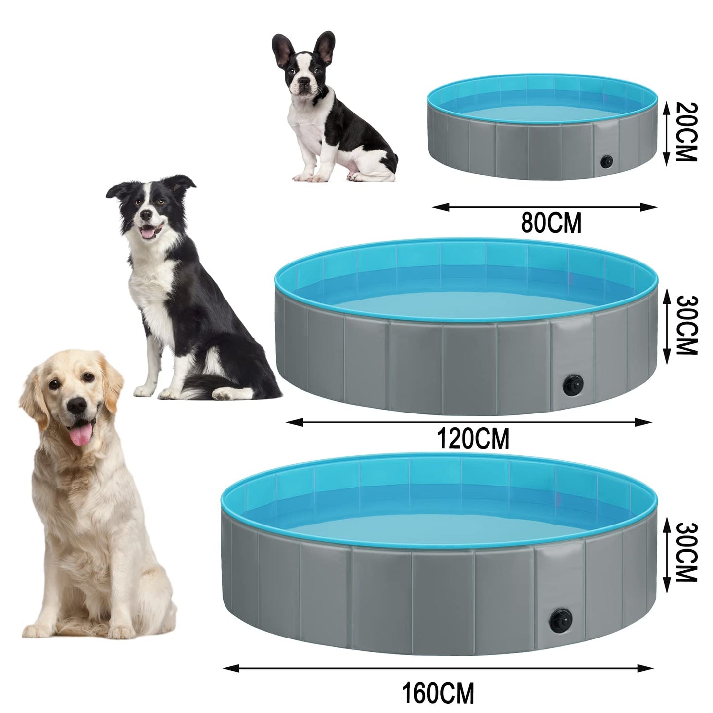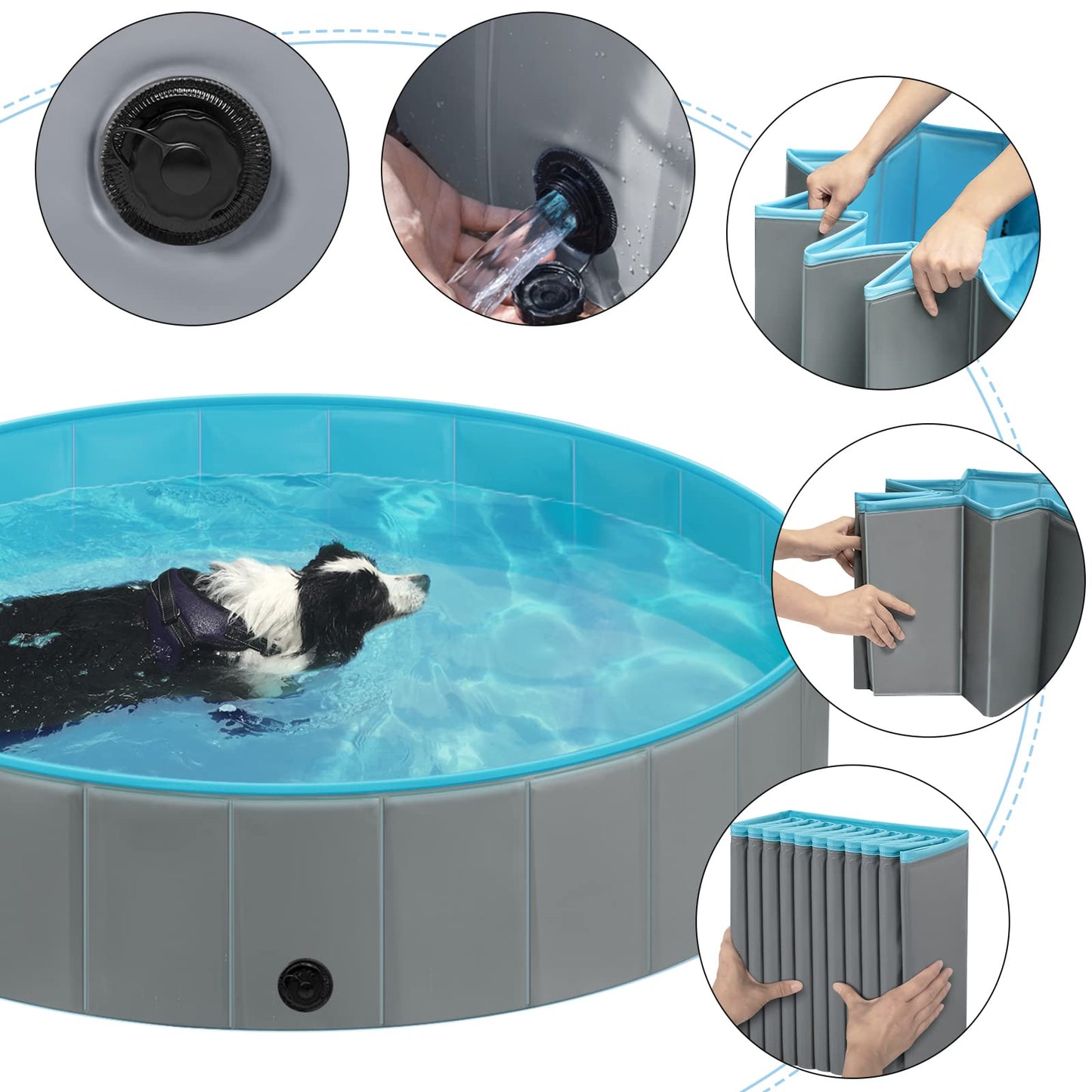 - Piscina plegable para mascotas: es fácil de plegarse a un tamaño pequeño. Cuando no lo necesita, puede plegarlo para guardar ahorrando espacio; también es conveniente para llevar al aire libre y en viajes.