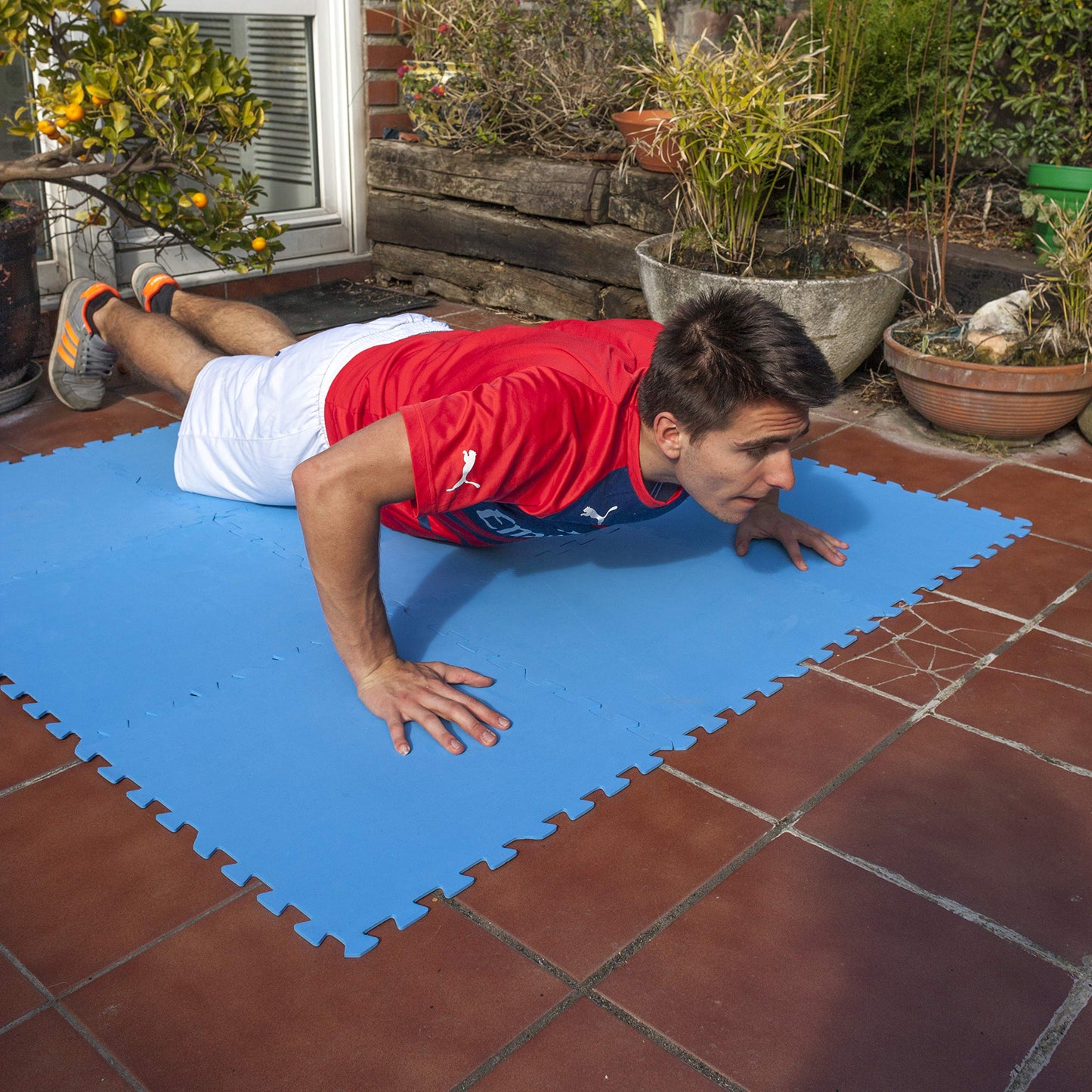 - Fabricado en EVA (etilvinilacetato) de alta densidad y resistencia, este protector tiene un grosor de 4,5 mm y cubre 2,25 m² con sus 9 piezas de 50 cm x 50 cm cada una. Adaptable a piscinas desmontables de cualquier tamaño y forma.