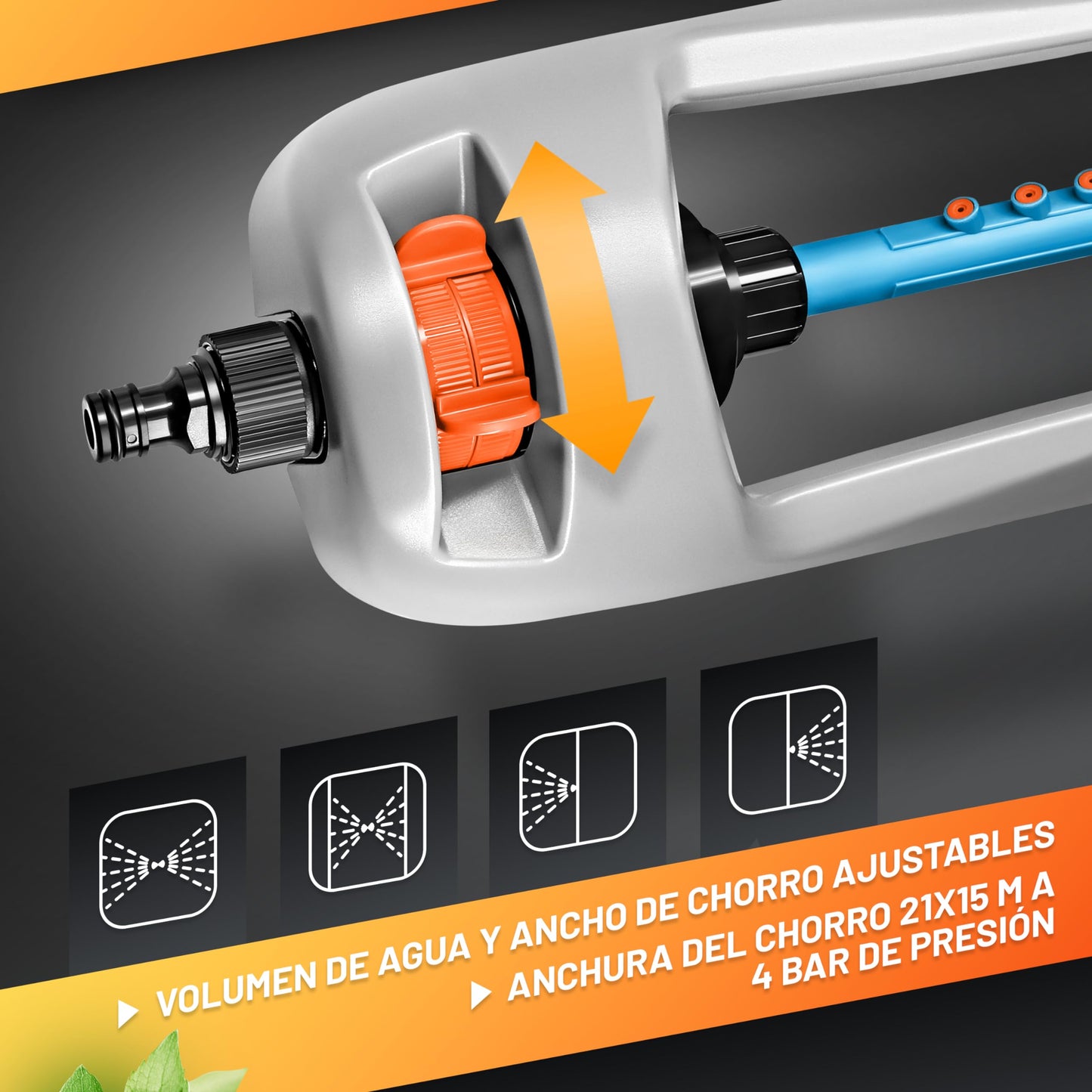 GRÜNTEK Aspersor de Riego Oscilante Primavera - Riego de Césped Jardín y Superficies rectangulares - Gran Alcance 20x15m (MAX. 366m²)