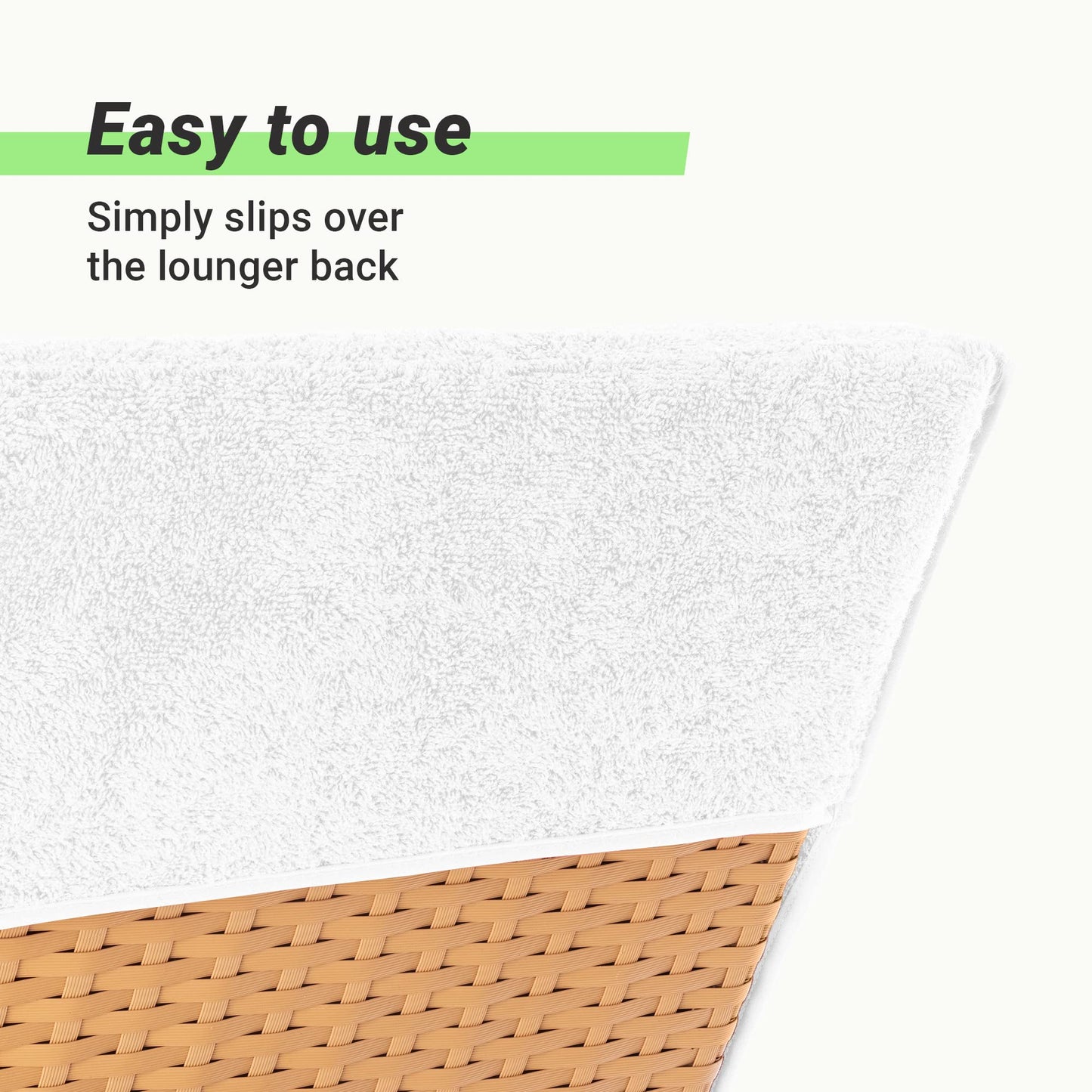 - TOALLA PARA TUMBONAS: Protege tu tumbona o colchoneta de exterior de las manchas, el sudor o la crema solar con esta funda de toalla. Cuenta con un diseño con capucha en la parte de arriba para que se quede bien sujeta al respaldo de la hamaca.