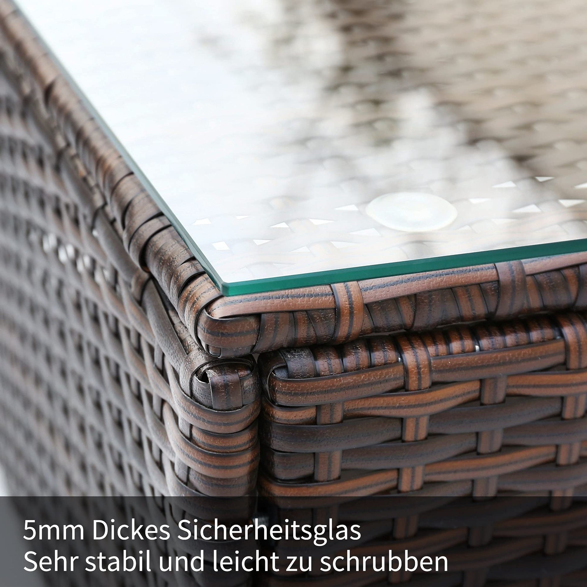 - Estructura de acero estable: una estructura de acero con recubrimiento en polvo sirve como andamio para el hermoso trenzado de polirratán. La robusta estructura de acero proporciona al grupo de asientos un soporte seguro. Gracias al recubrimiento de polvo integral, la estructura está bien protegida contra la corrosión.
