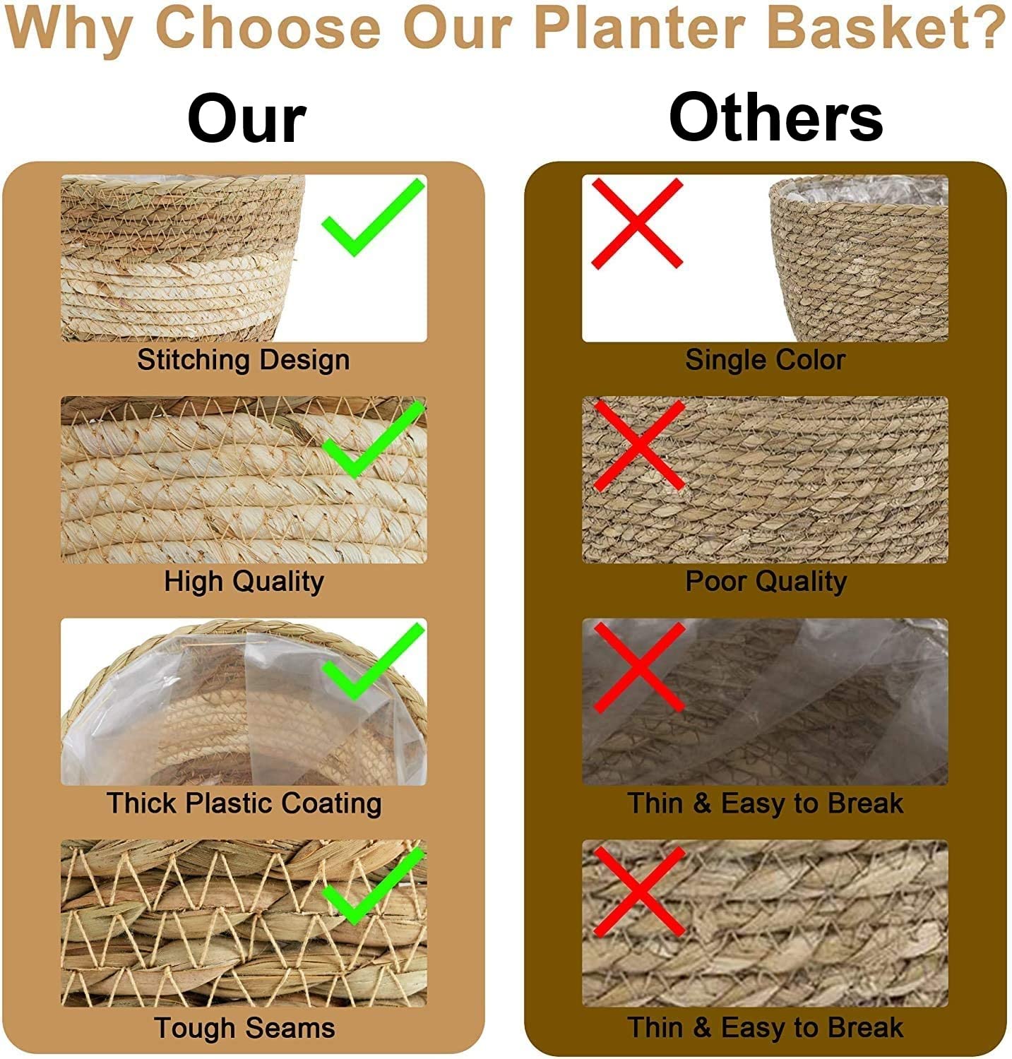 - [Alta calidad] Hecho de fibra de pastos marinos de alta calidad, tejido a mano, resistente y duradero, no es fácil de pudrir, no es fácil de soltar y rasgar, y se puede reutilizar (no se recomienda usar macetas en lugares húmedos)