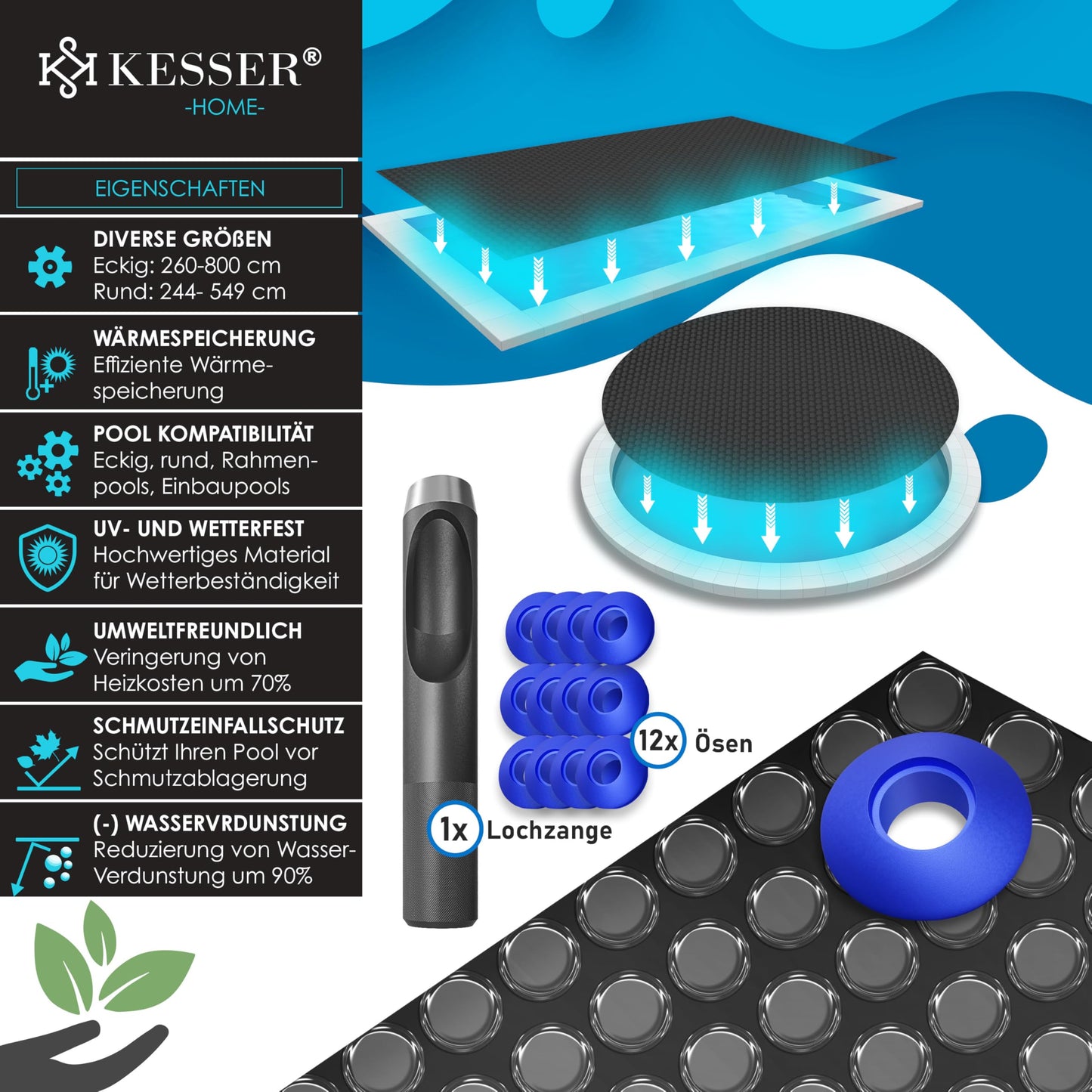 KESSER® Lona Solar para Piscina Redonda Ø 244 cm | Lona Solar de la Piscina Calentamiento de la Piscina de lámina Solar para Calentar el Agua Lona térmica, Negro, Ø 457 cm