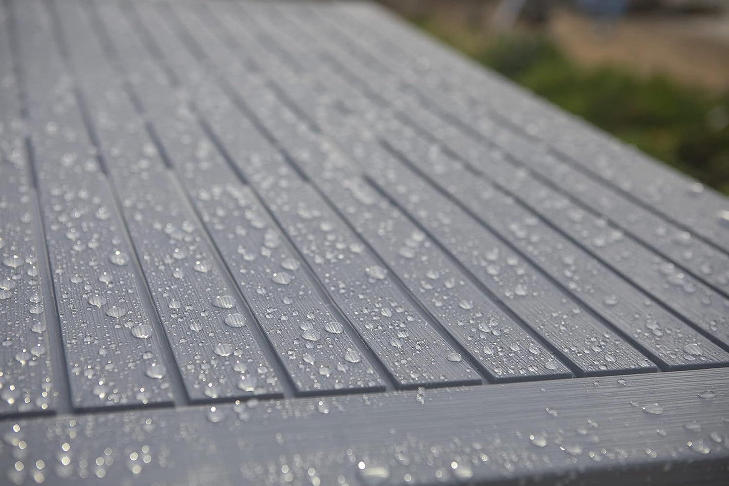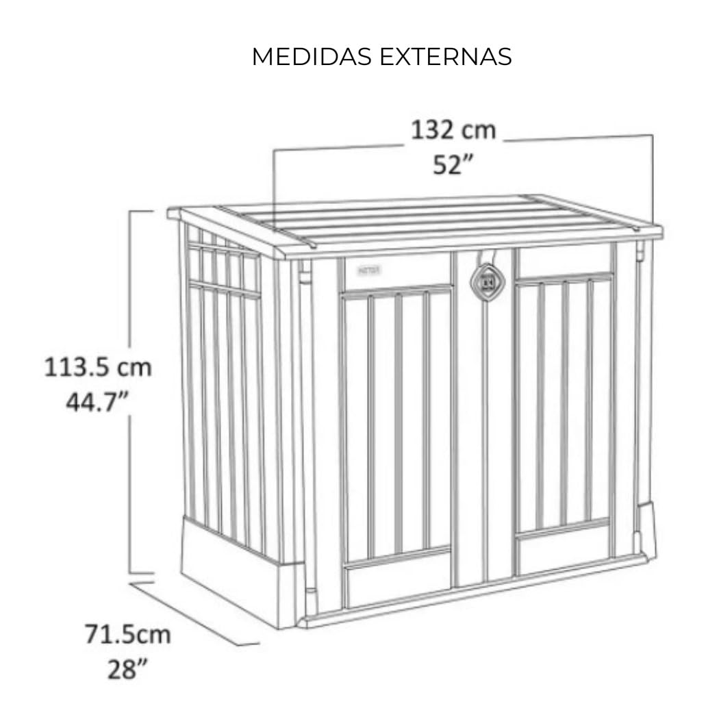 - Cobertizo de ordenacion exterior con doble puerta y tapa abatible imitacion madera