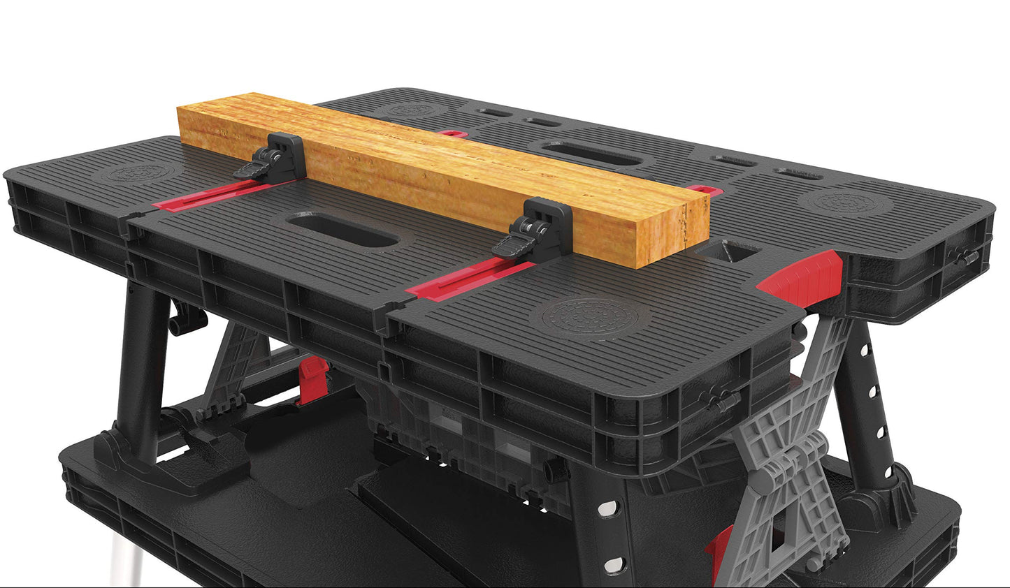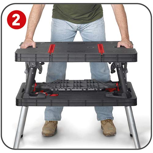 Keter- Mesa de herramientas plegable; 85 x 55,5 x 11,2 cm (cerrado) - 91 x 55,5 x 75,5 cm (abierto); Resistencia 450 Kg; Color negro