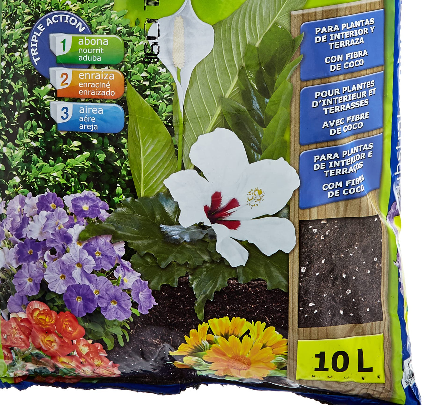 KETER - Maceta Mediana de Base Redonda, 18 litros, Color marrón Chocolate + Flower Universal Premium Substrato, 10L, Marrón, 29x6x46 cm