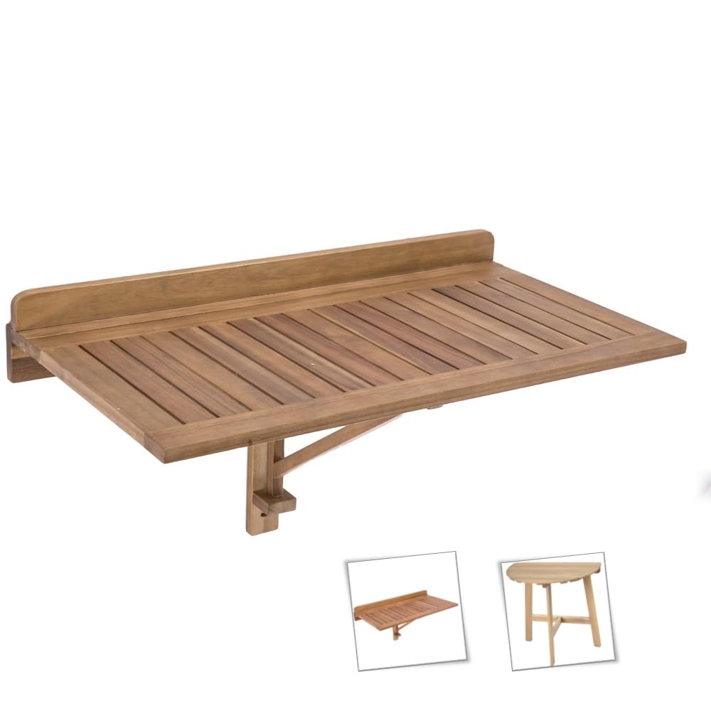 LOLAhome Mesa de Pared Plegable Abatible de 45x47x80 cm | Madera Acacia Maciza Natural Marrón | para Interior o Exterior Balcón, Terraza o Jardín - Colección Nina