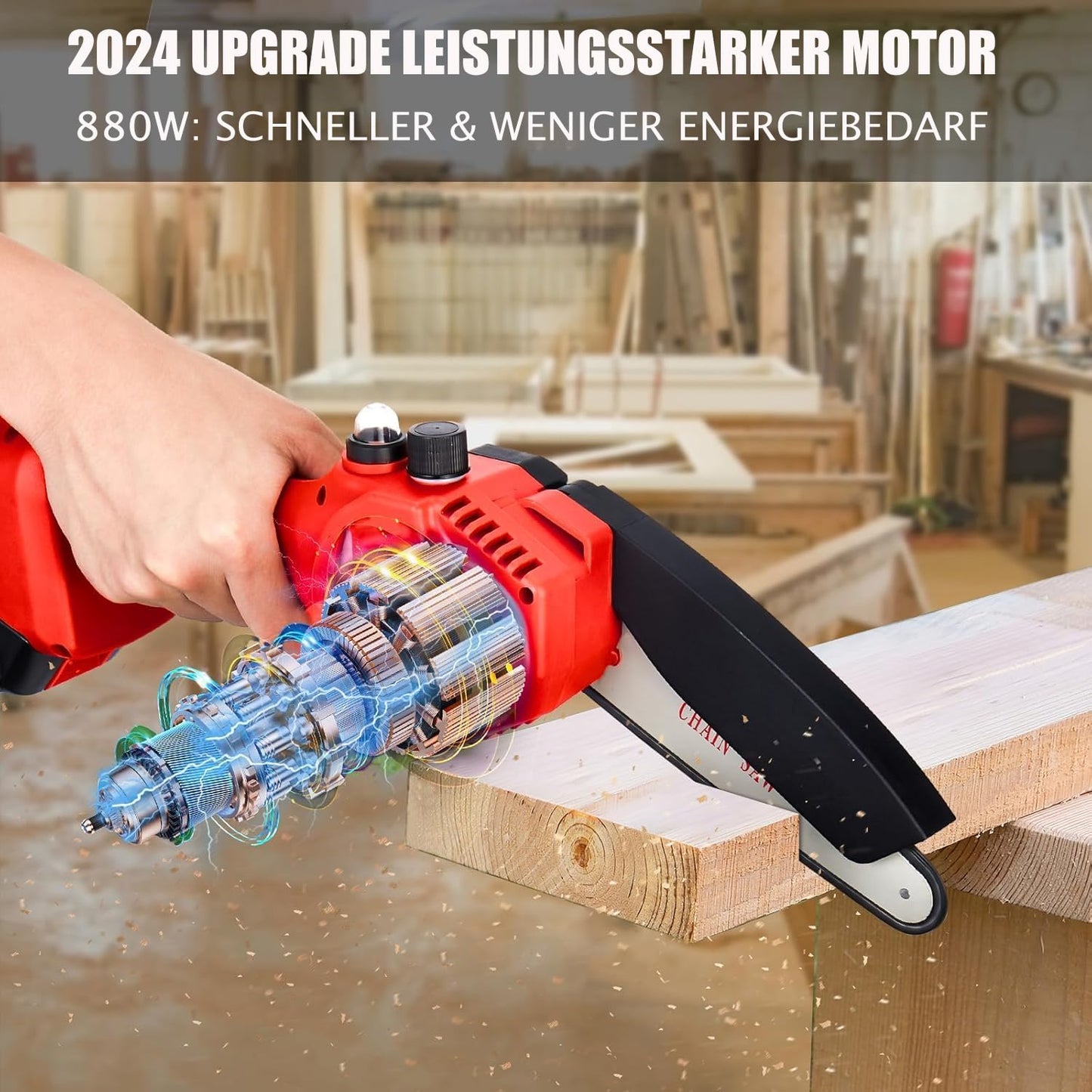 CEEPUY 2x4000mAh Mini Motosierra Bateria Motosierra a Bateria 6 Pulgadas, 880W Eléctrica Motosierra Sierra Electrica Podar Arboles Motosierra de Mano Mini Sierra Motosierra Pequeña Para Jardin