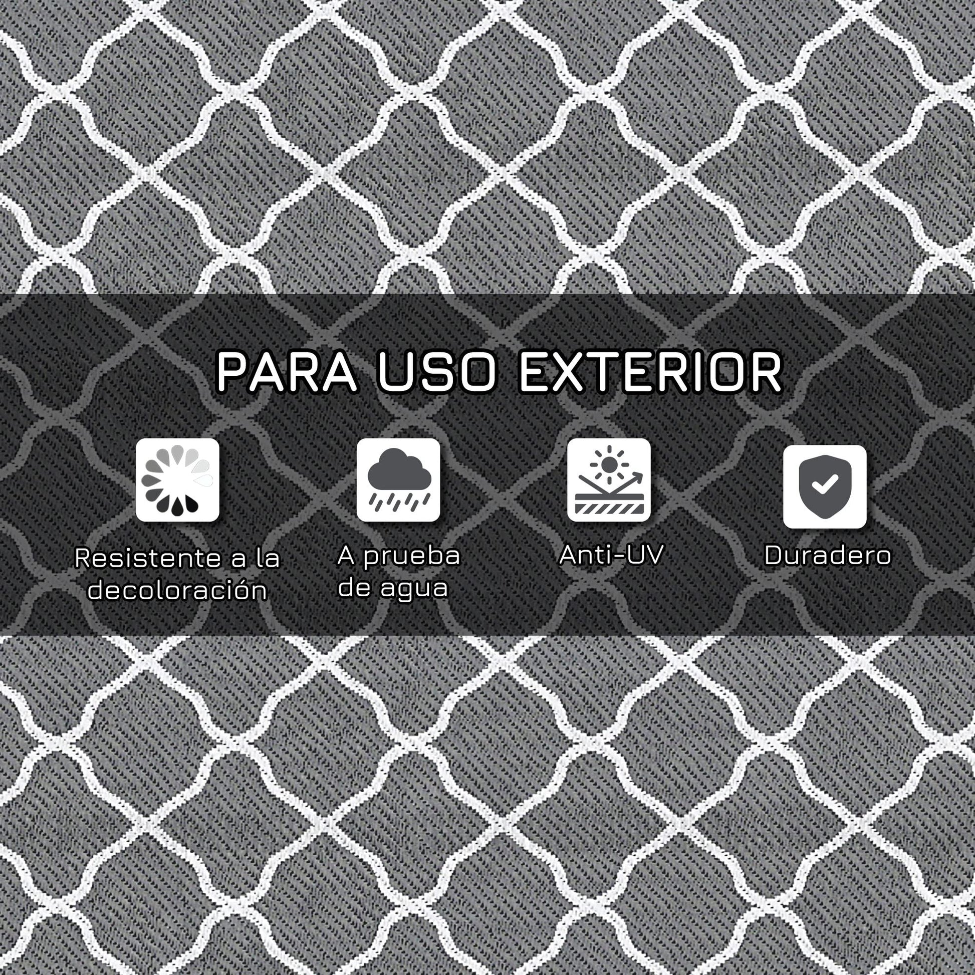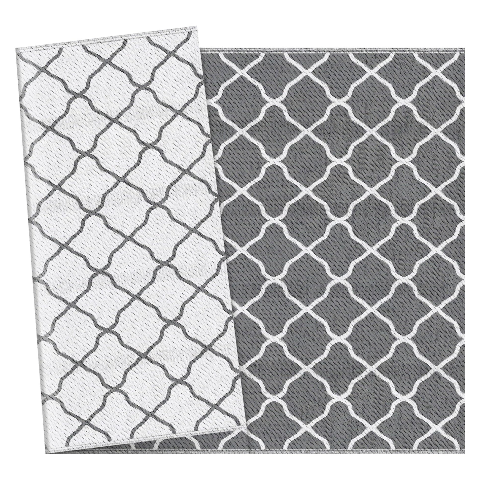 Outsunny Alfombra Exterior 182x274 cm Alfombra Moderna Alfombra Reversible de Plástico Impermeable para Terraza Balcón Patio Camping Playa Gris y Blanco