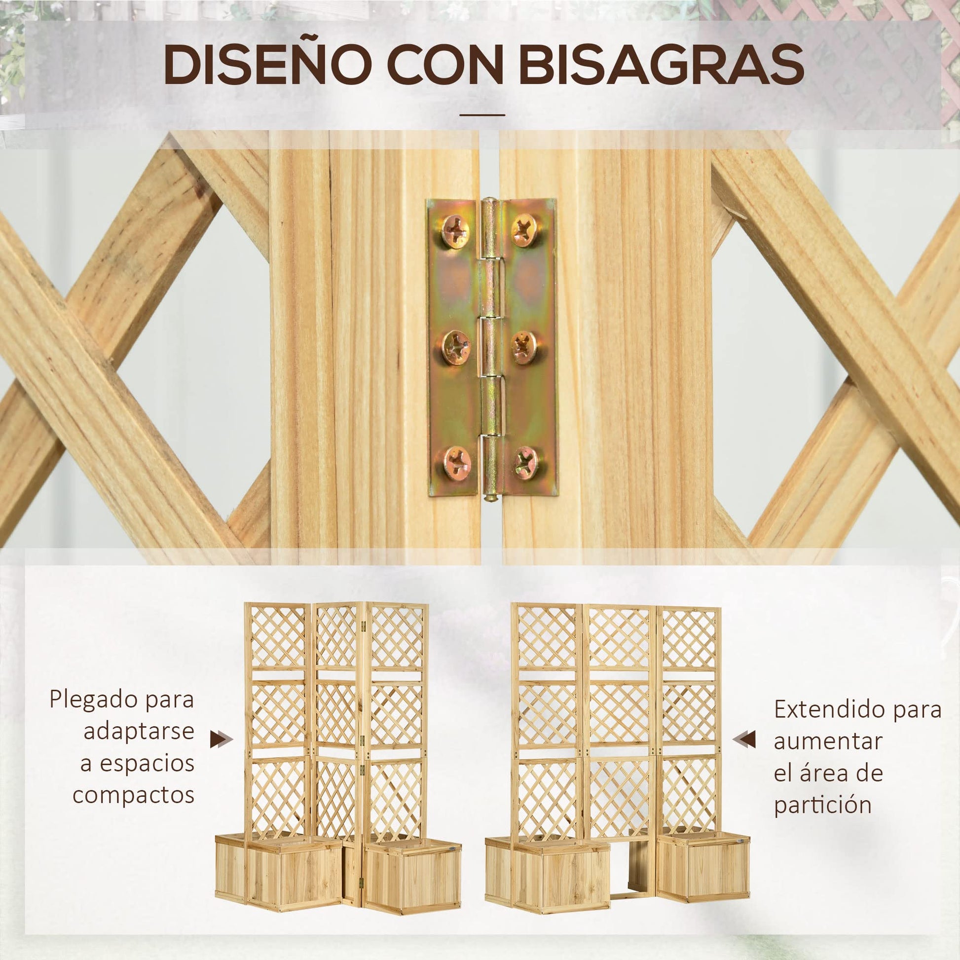 Outsunny Biombo Exterior de 3 Paneles de Madera con 4 Macetas Pantalla de Privacidad de Jardín con Orificios de Drenaje Separador de Ambientes para Terraza Patio 133x62x165 cm Natural