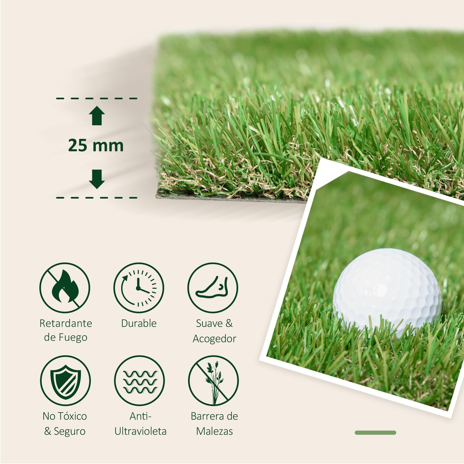 Outsunny Césped Artificial 3x1 m con Altura de Hierba 25mm Tipo Alfombra o Estera de Hierba Sintética de Exterior para Jardín y Terraza