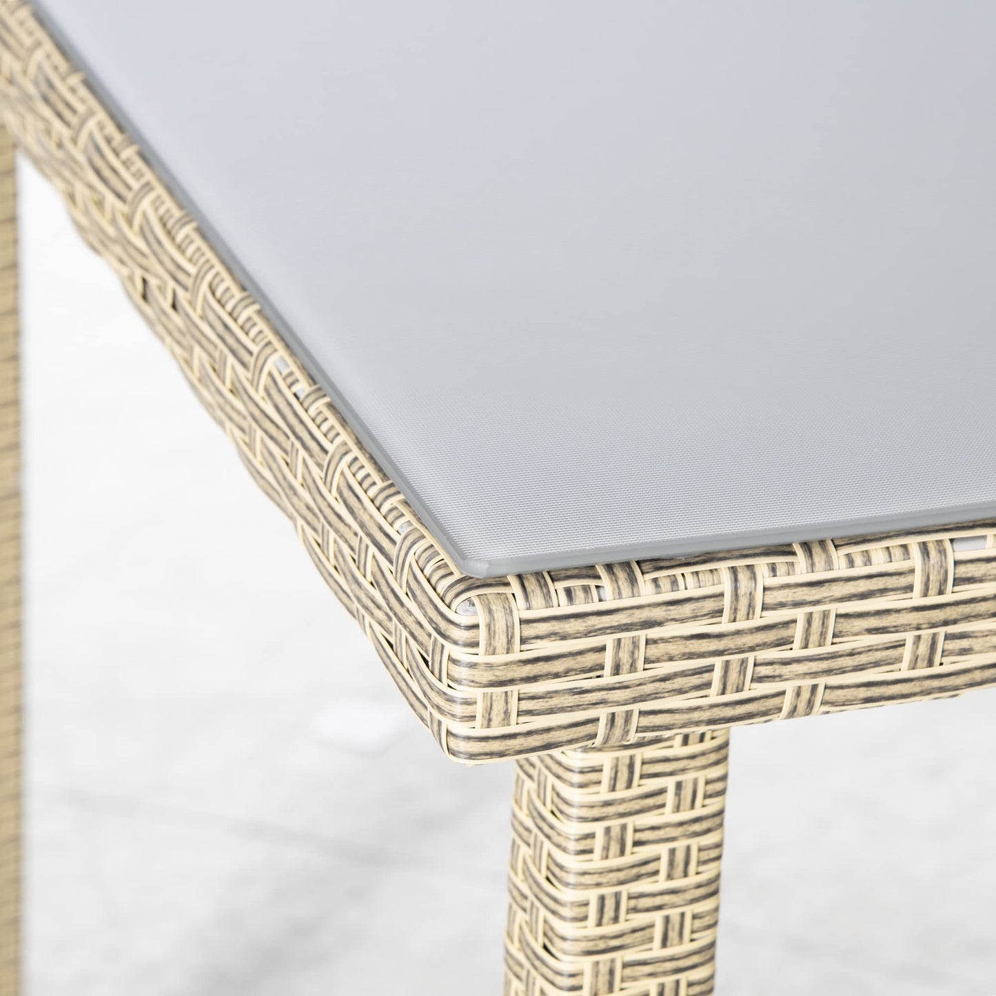 Outsunny Conjunto de Muebles de Comedor para Jardín 7 Piezas 1 Mesa de Vidrio y 6 Sillas de Ratán con Respaldo Transpirable y Cojines Acolchados para Terraza Exterior Gris y Natural