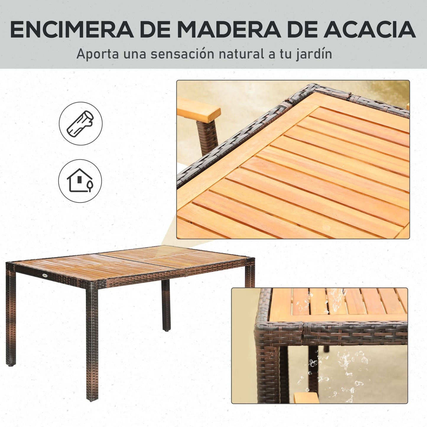 - RESISTENTE Y ELEGANTE: Este juego de comedor para exteriores está construido con un marco de acero resistente envuelto en ratán PE que es para un uso prolongado. La encimera de la mesa está hecho de madera de acacia natural, lo que aportará una sensación natural y elegante a tu jardín