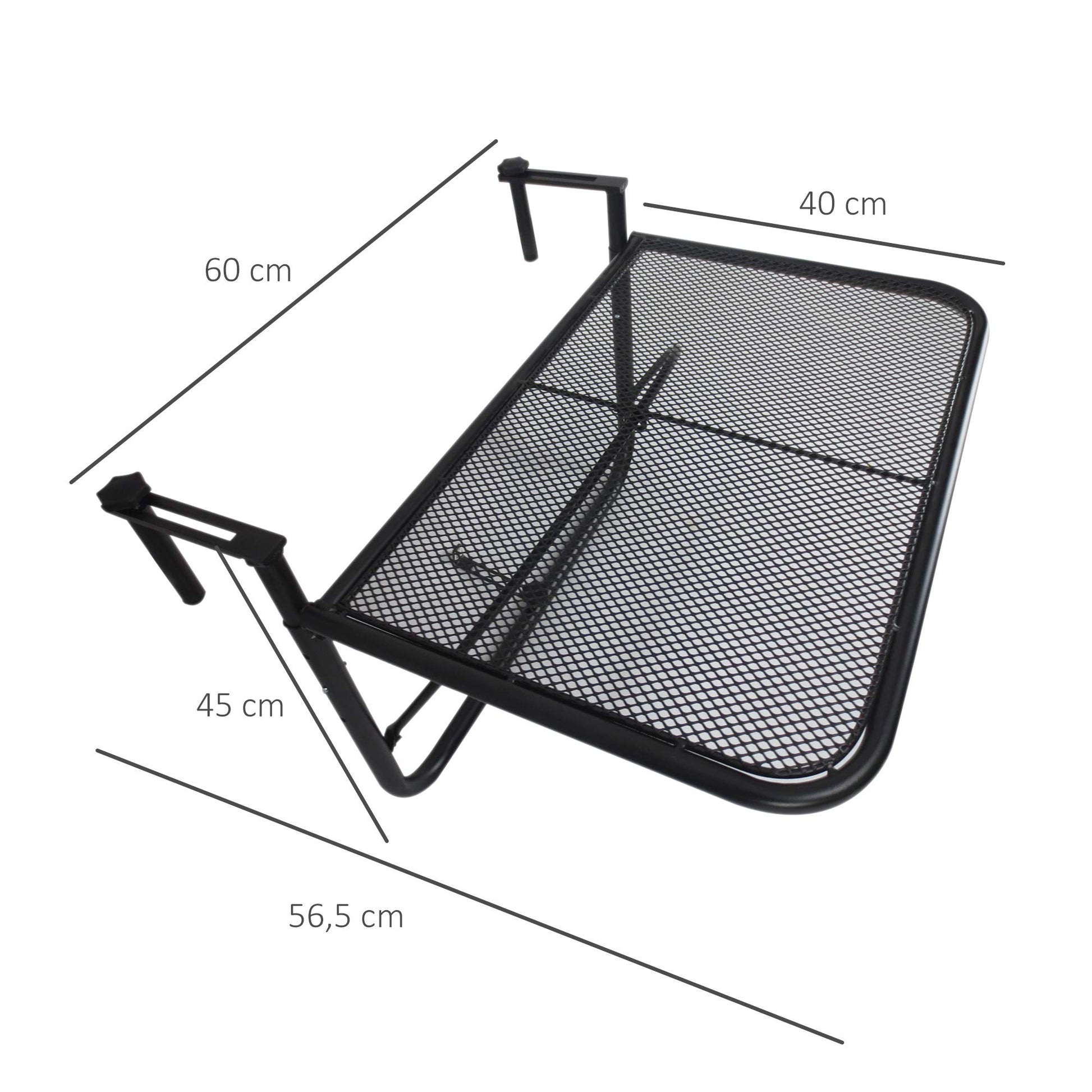 Outsunny Mesa Colgante de Balcón con Brazo Regulable y Altura Ajustable en 3 Posiciones Marco Metálico Carga Máx. 30 kg 60x56,5x45 cm Negro