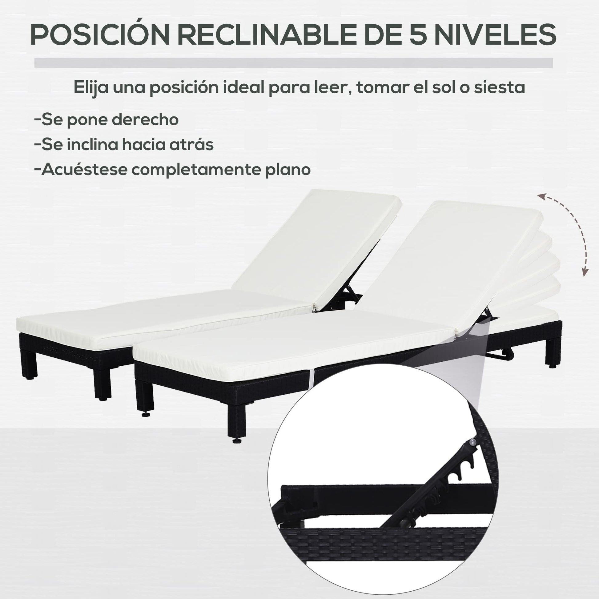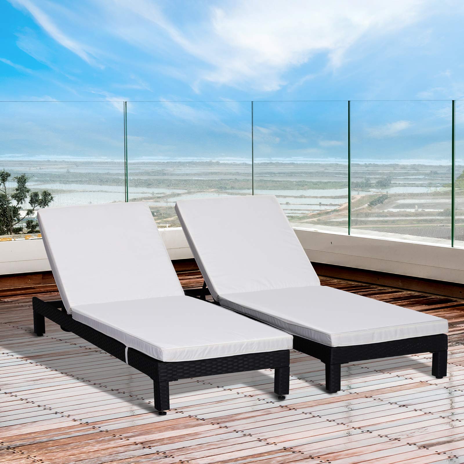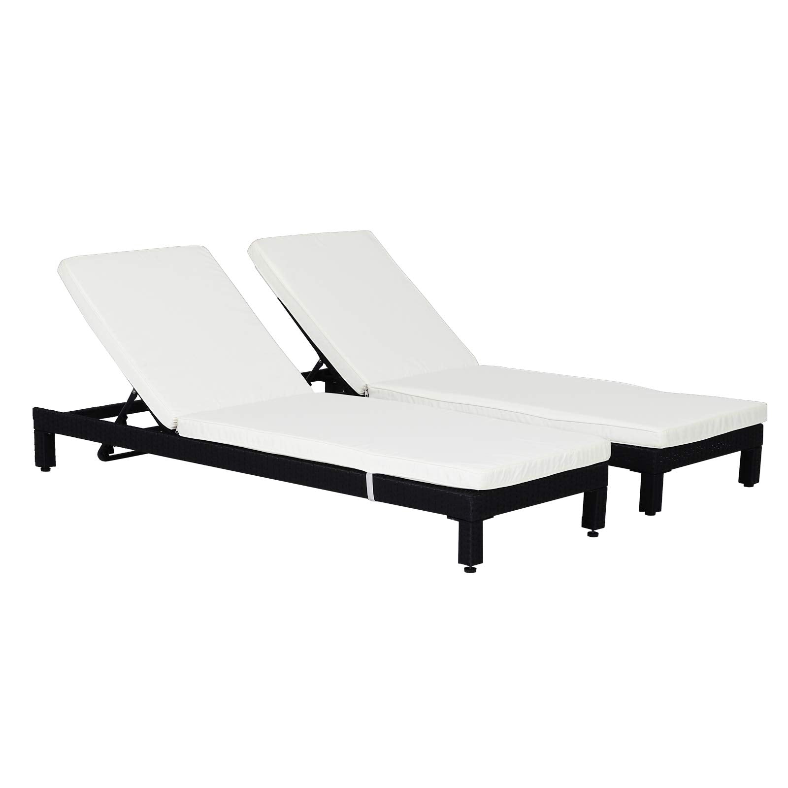 Outsunny Set de 2 Tumbonas de Ratán Chaise Longue con Cojines Acolchados Cubierta Impermeable Silla para Exterior Jardín Patio Terraza