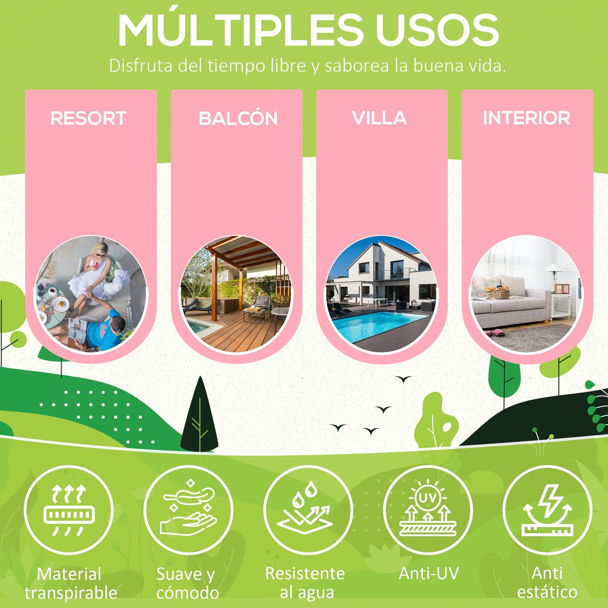 - CONJUNTO DE 2 PIEZAS: Adecuado para interiores y exteriores, este conjunto de 2 piezas está compuesto por un sofá de dos plazas y por un banco que se puede usar también a modo de reposapiés. Perfecto para pasar una tarde relajada en el jardín, en la terraza o dentro de casa