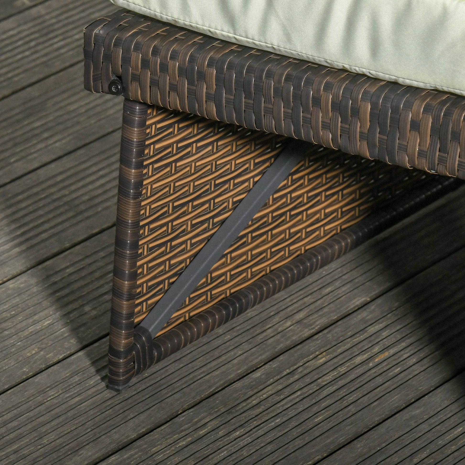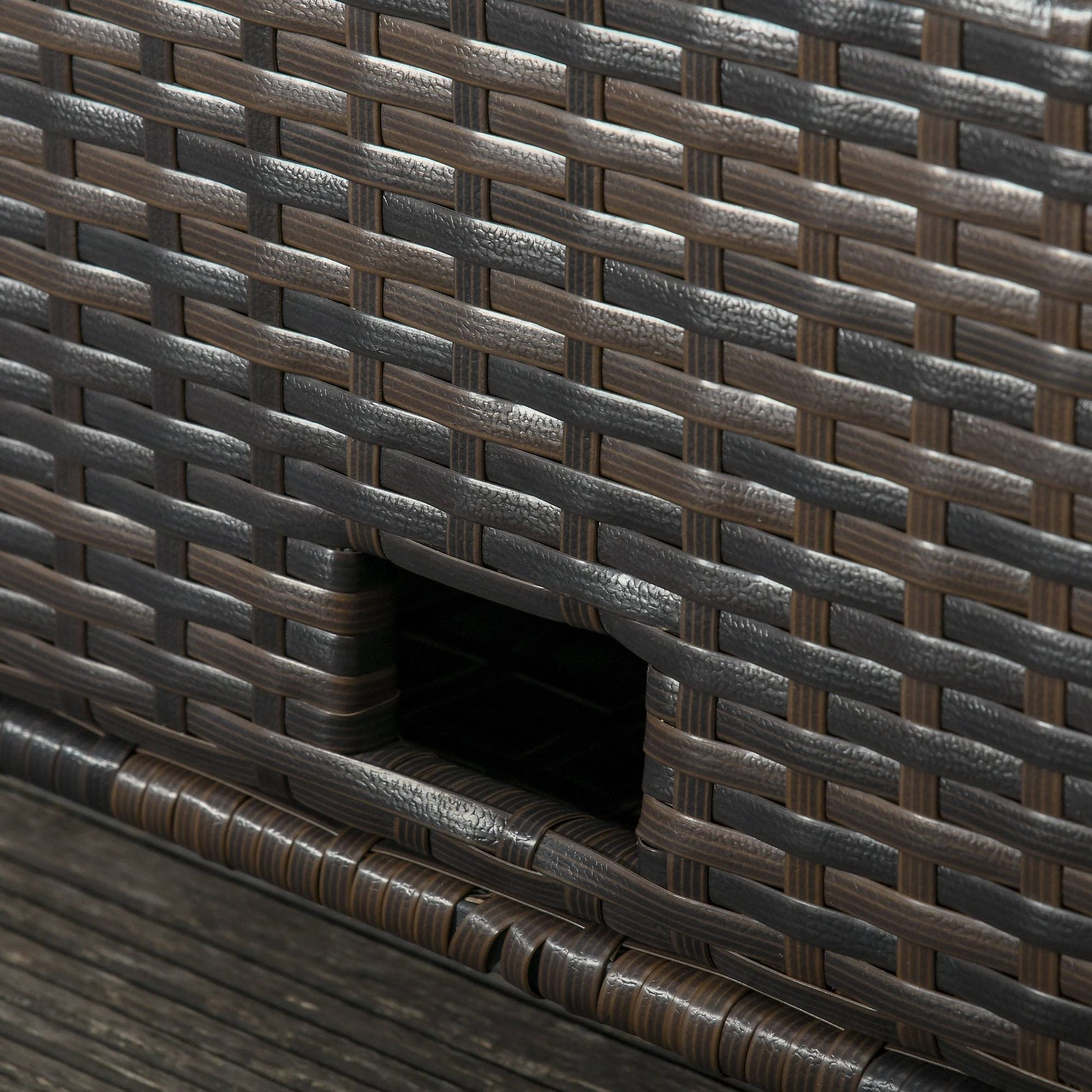 Outsunny Sofá de Ratán de 2 Plazas con Mesitas y Reposapiés de Almacenaje Tumbona de Jardín con Respaldo Inclinable y Cojines Gruesos Desenfundables 130x76x96 cm Marrón y Beige
