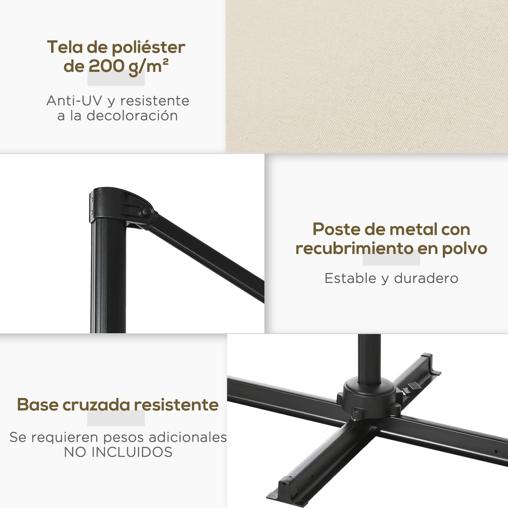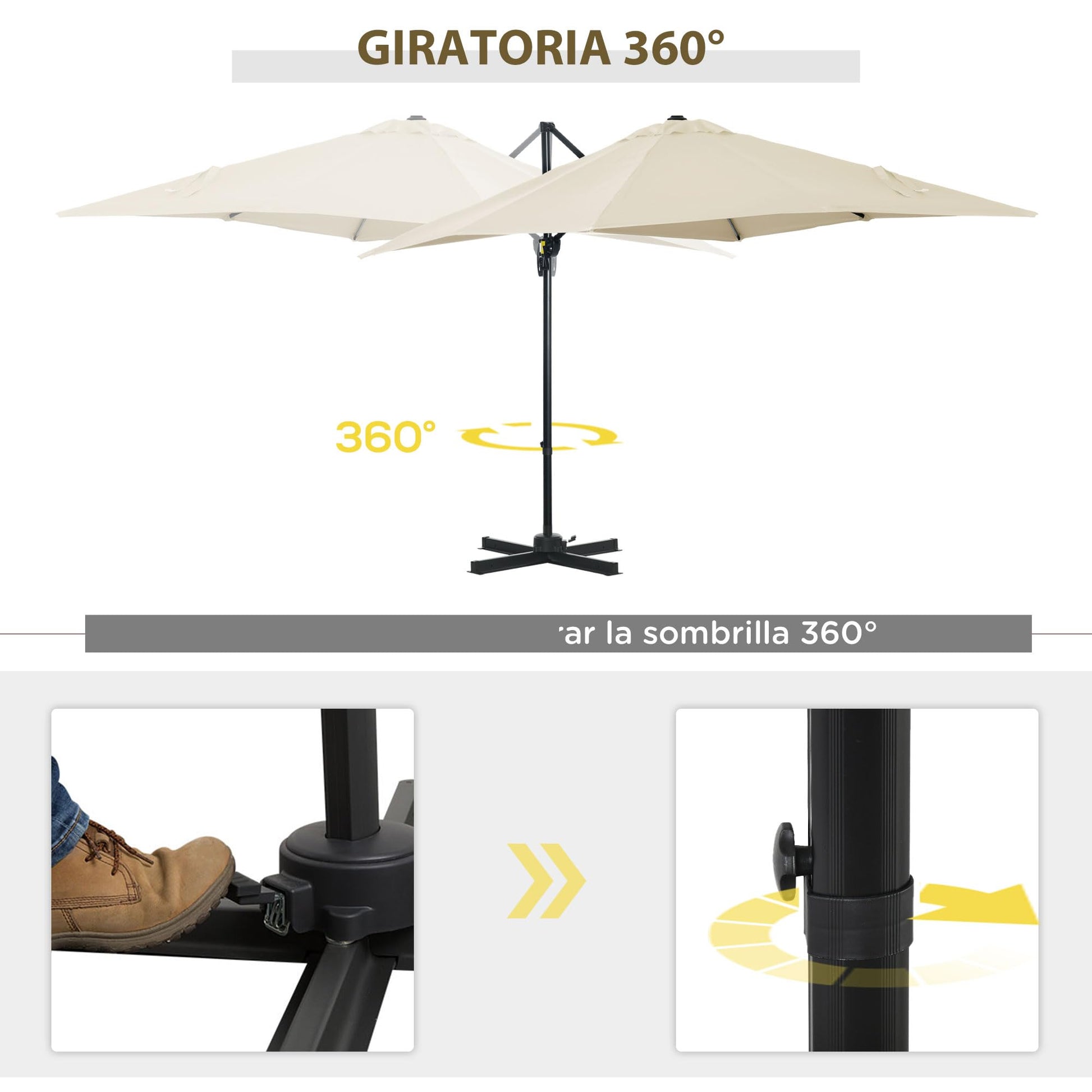 Outsunny Sombrilla de Jardín de Aluminio 245x245x245 cm Parasol Excéntrico con Manivela Giratorio 360° Inclinación de 5 Niveles Tela Desmontable Crema