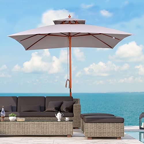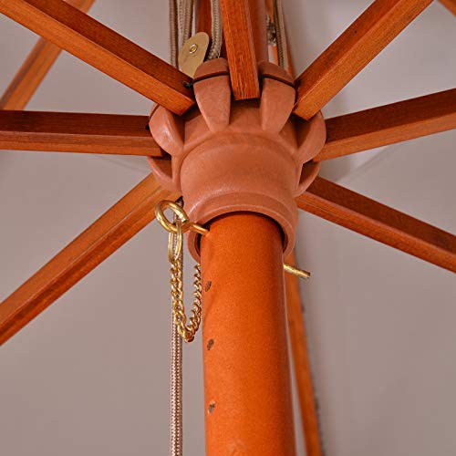 - ESTRUCTURA DE MADERA: Sombrilla de jardín exterior con marco de madera de álamo resistente de estilo clásico y contemporáneo, con 8 varillas que sujetan firmemente la cubierta de poliéster