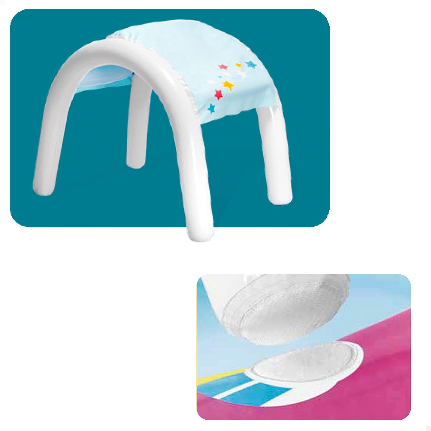 - Piscina unicornio INTEX hinchable con parasol desmontable y rociador de agua, medidas 254x132x109 cm