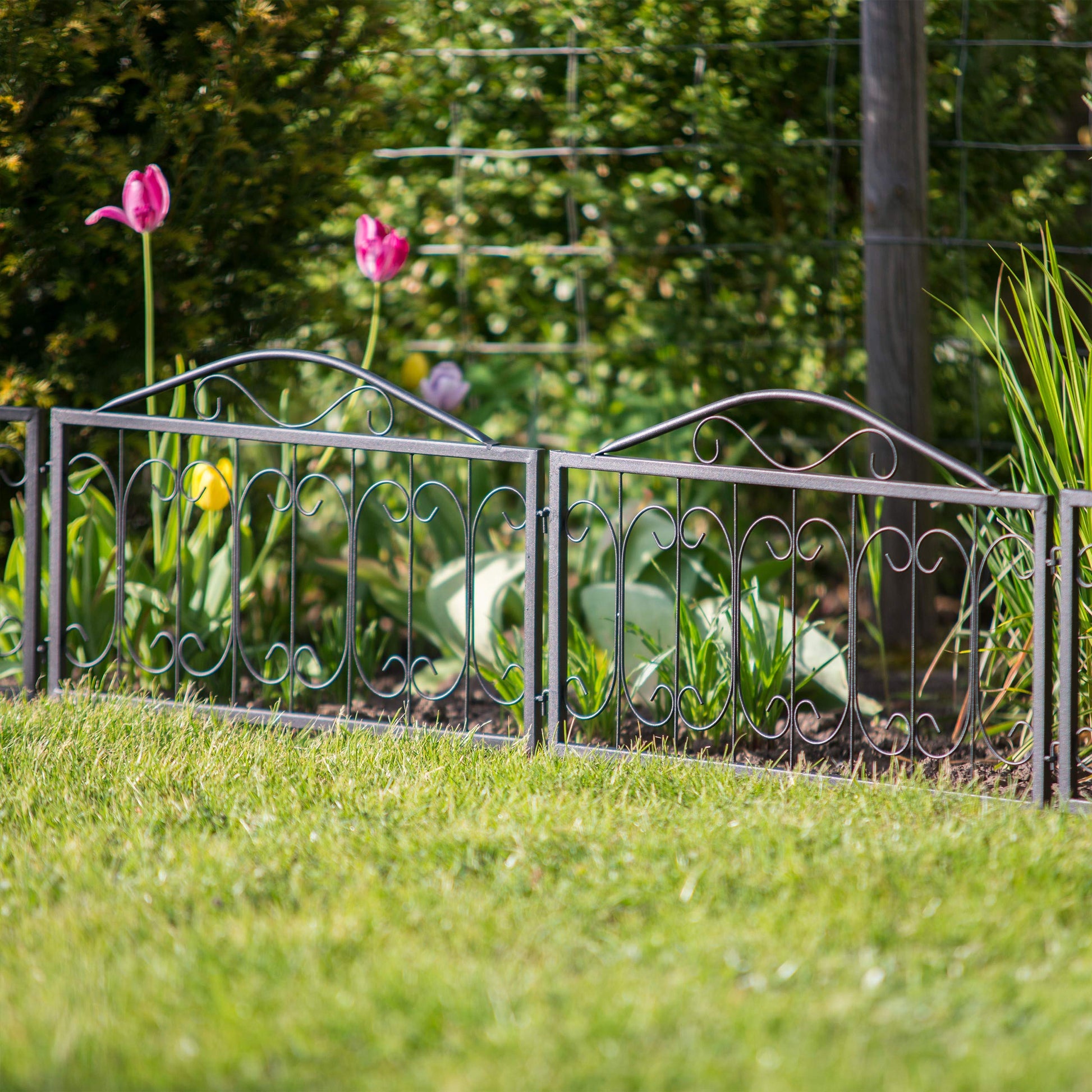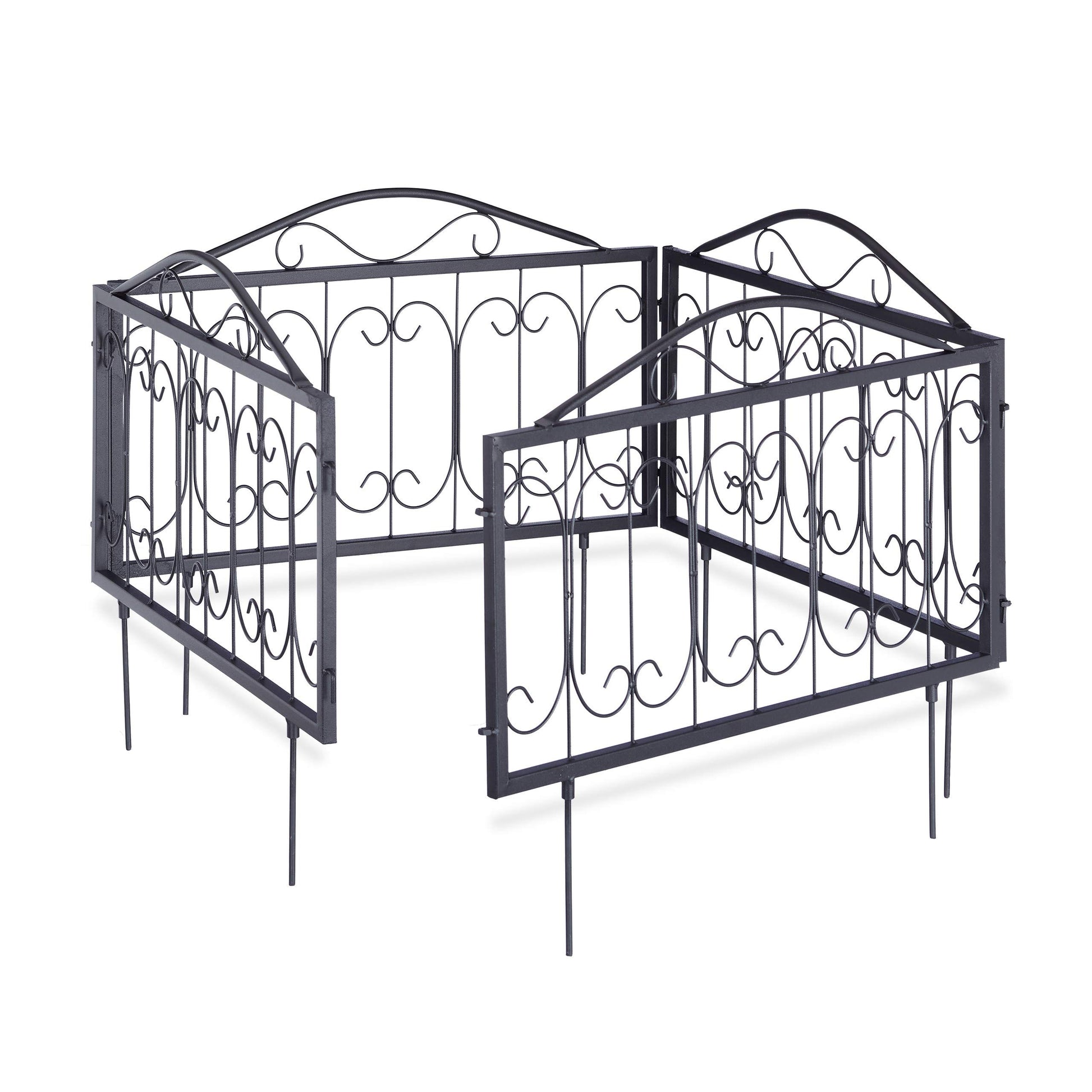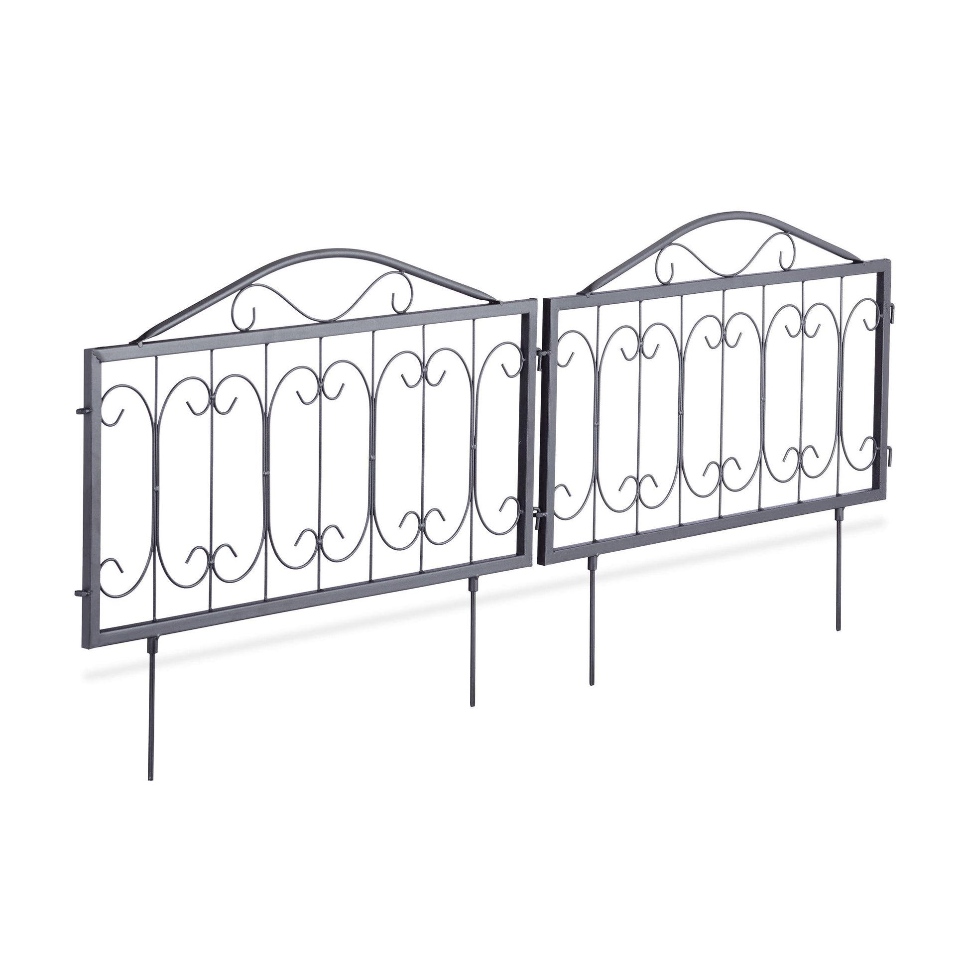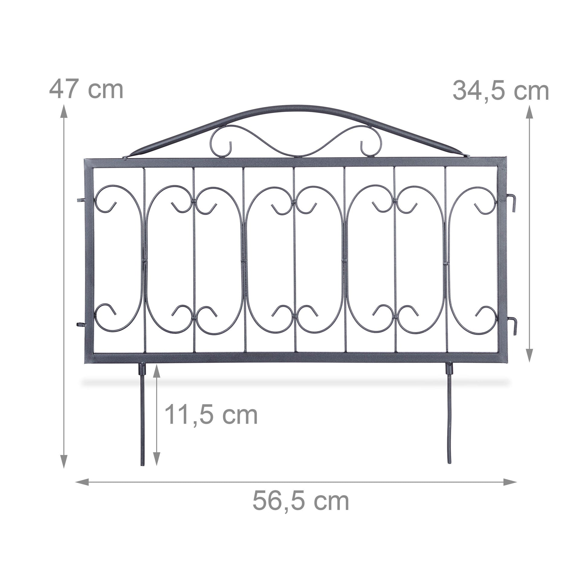 Relaxdays Valla Jardín Metálica, Estilo Vintage, Vallado Huerto con Adornos, 4 Paneles de Valla, 34,5x56,5 cm, Negro