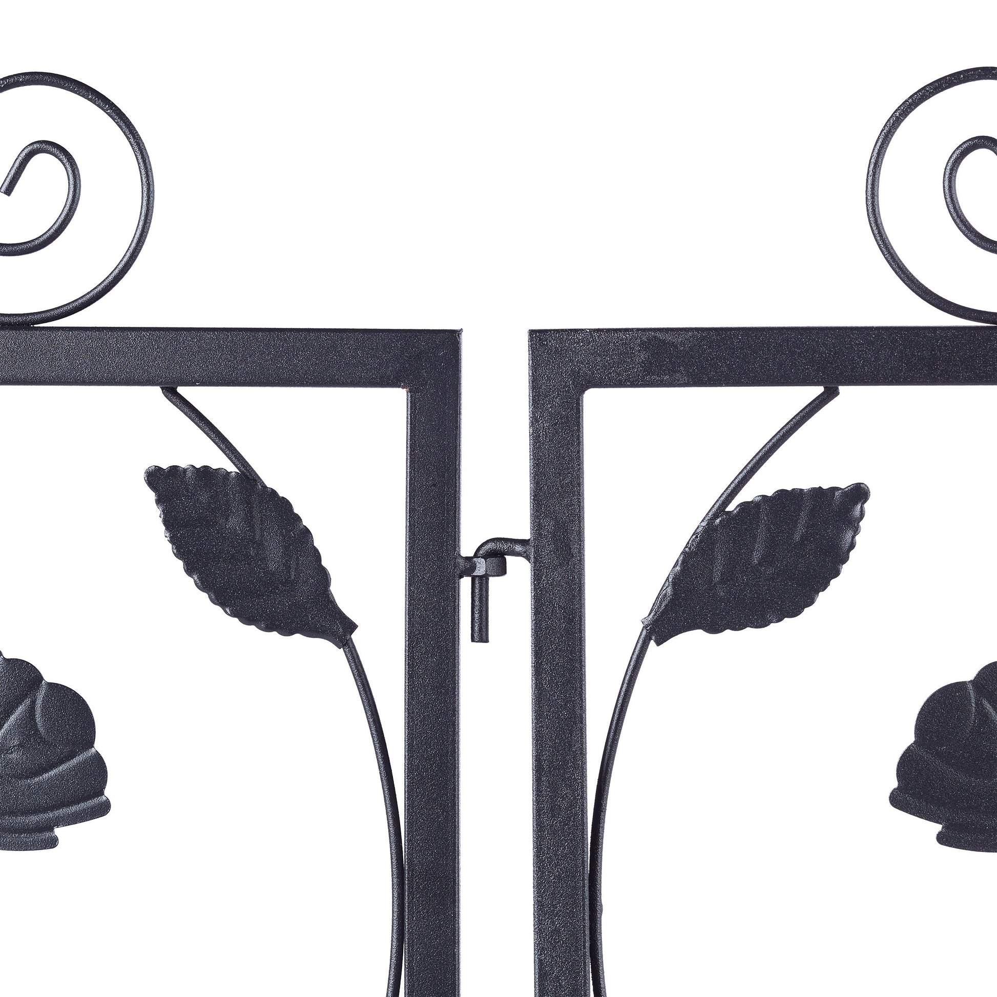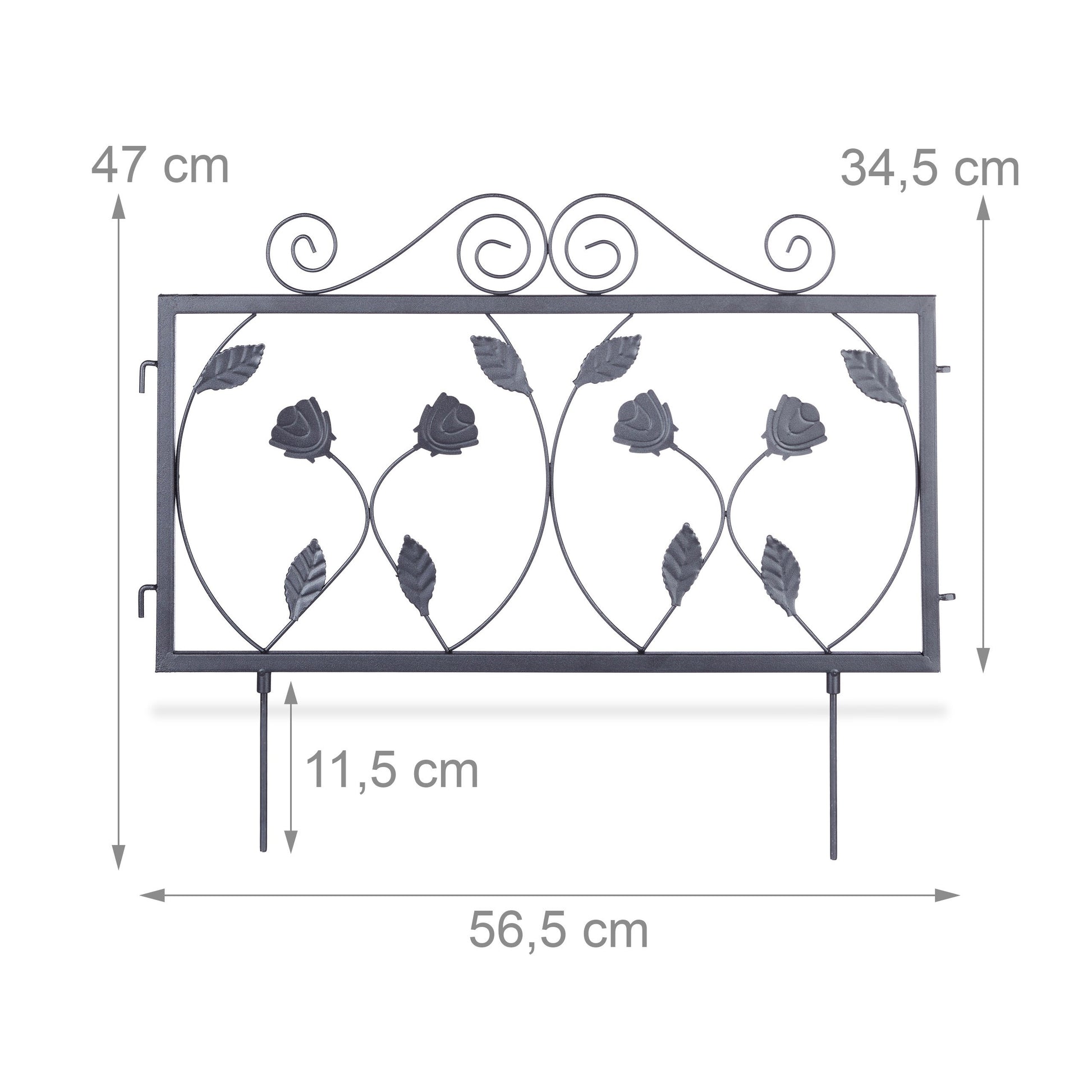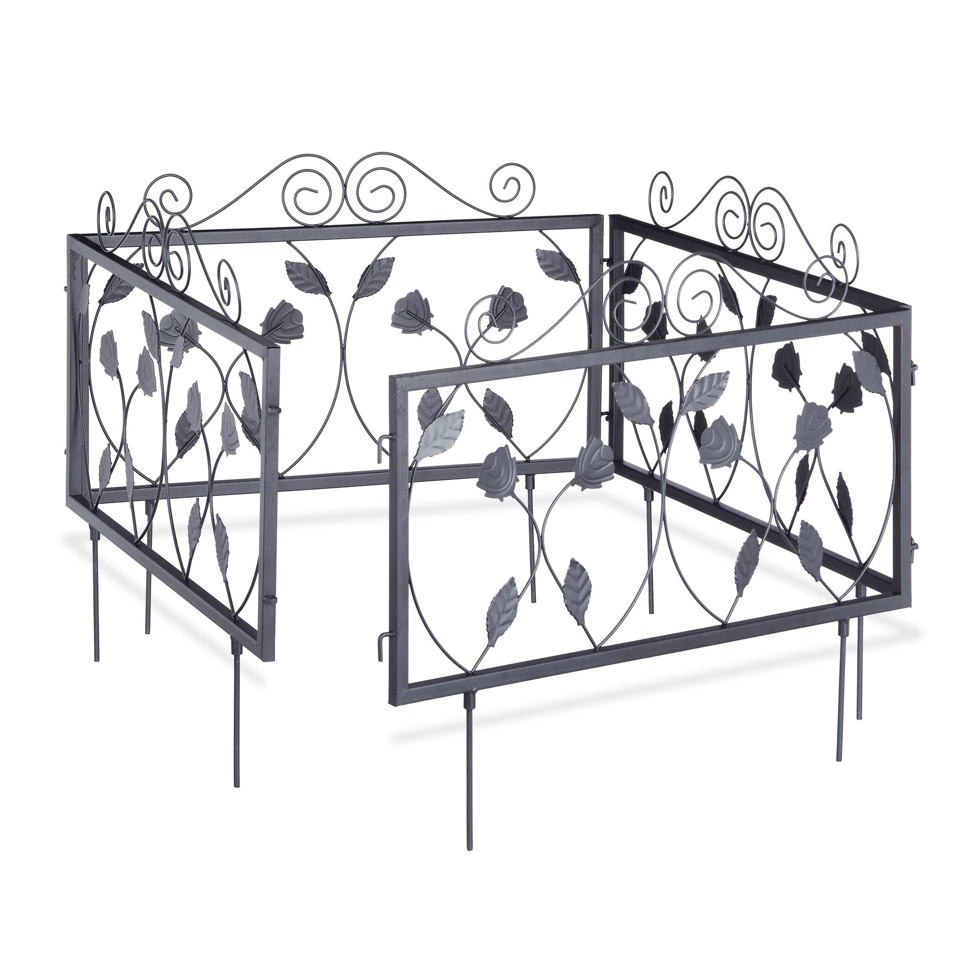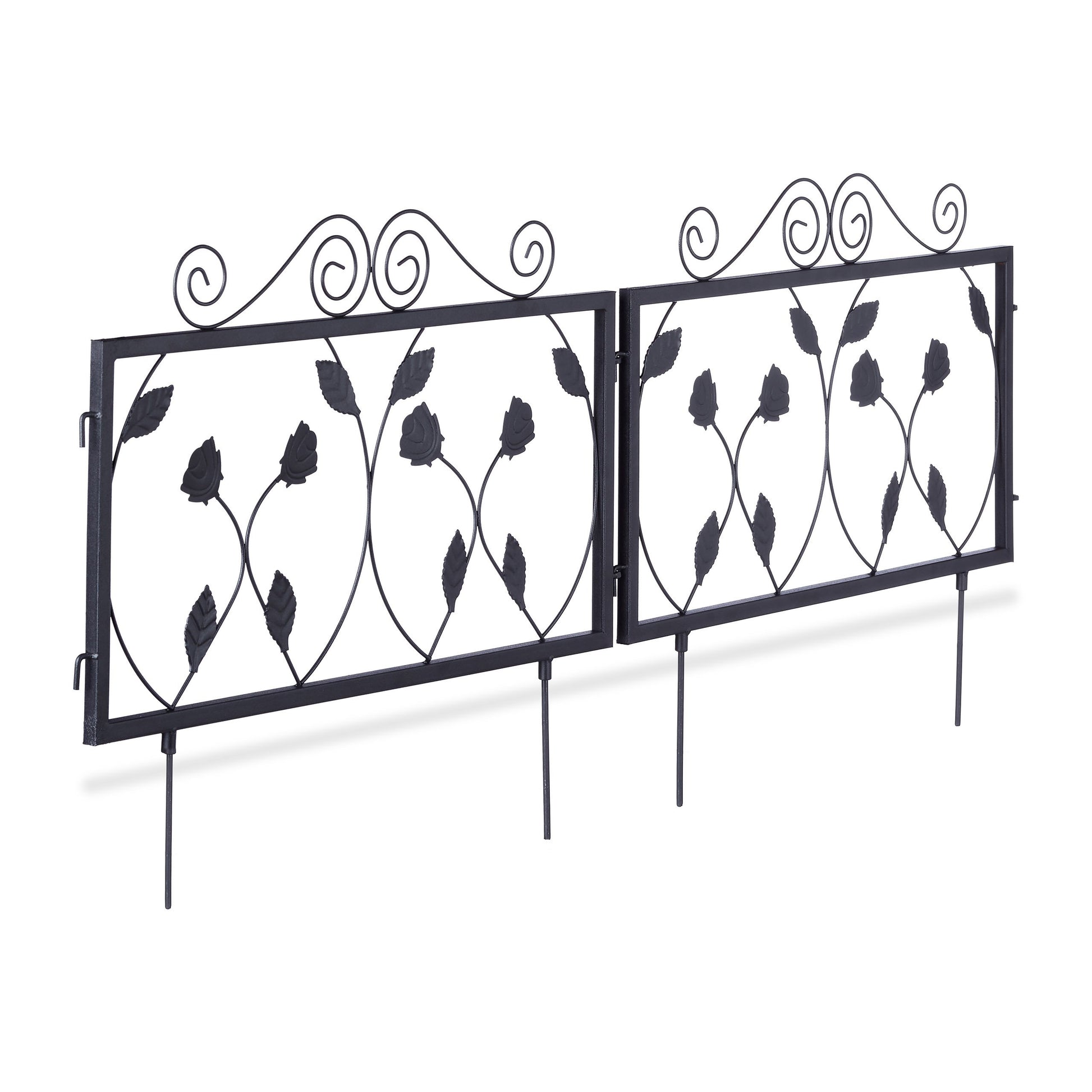 Relaxdays Valla Jardín Metálica, Estilo Vintage, Vallado Huerto con Hojas Adorno, 4 Paneles Valla, 34,5x56,5 cm, Negro