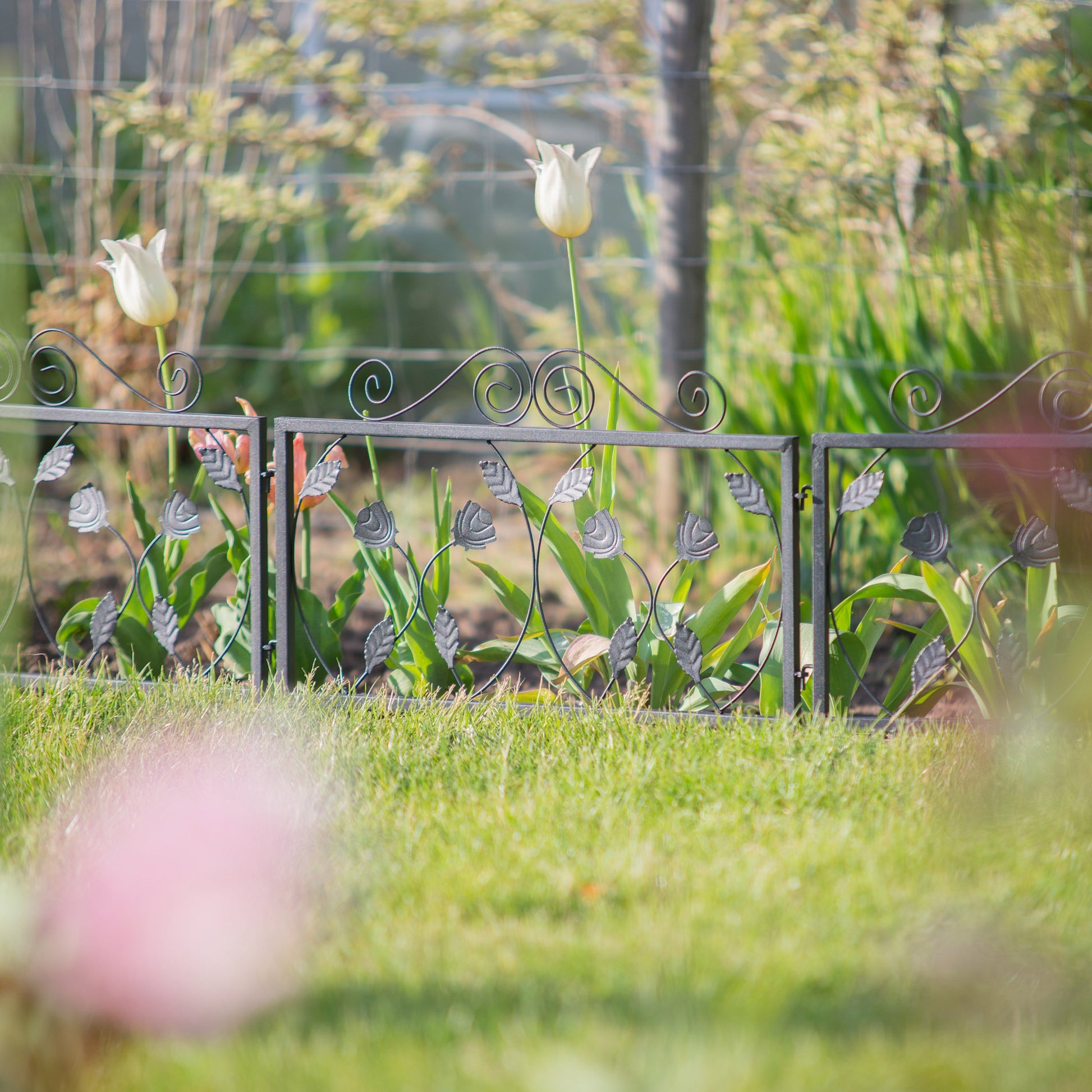 - Para el jardín: la valla metálica exterior sirve para delimitar zonas de huerto, césped y caminos