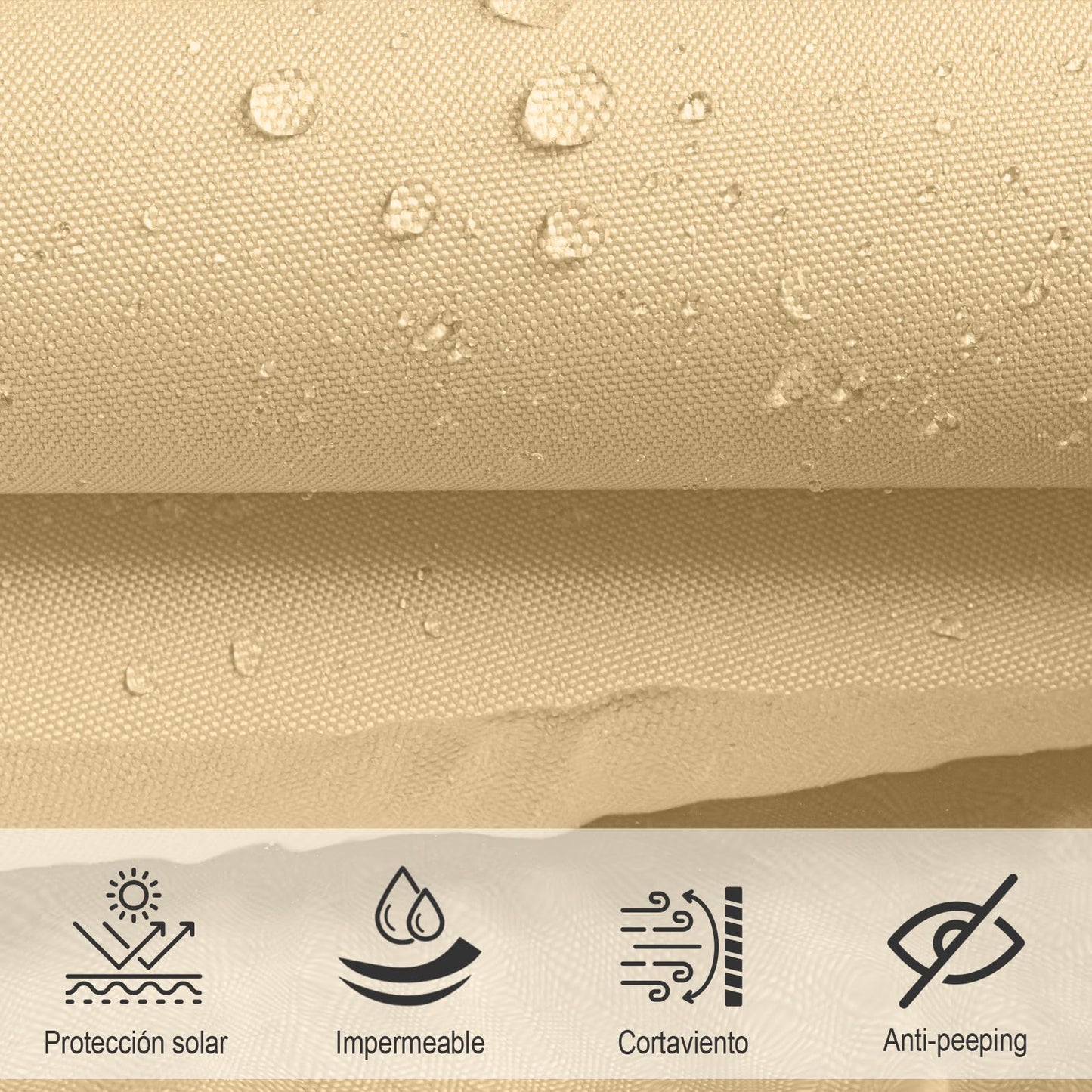 - ✔【Materiales de alta calidad】: Toldo sombra fabricado en tejido 100% poliéster (160g/m²), con revestimiento de PU, resistencia a la presión del agua 400 kPa, 95% de índice de sombra y protección contra hasta el 95% de los rayos UV nocivos, crea un espacio más cómodo.
