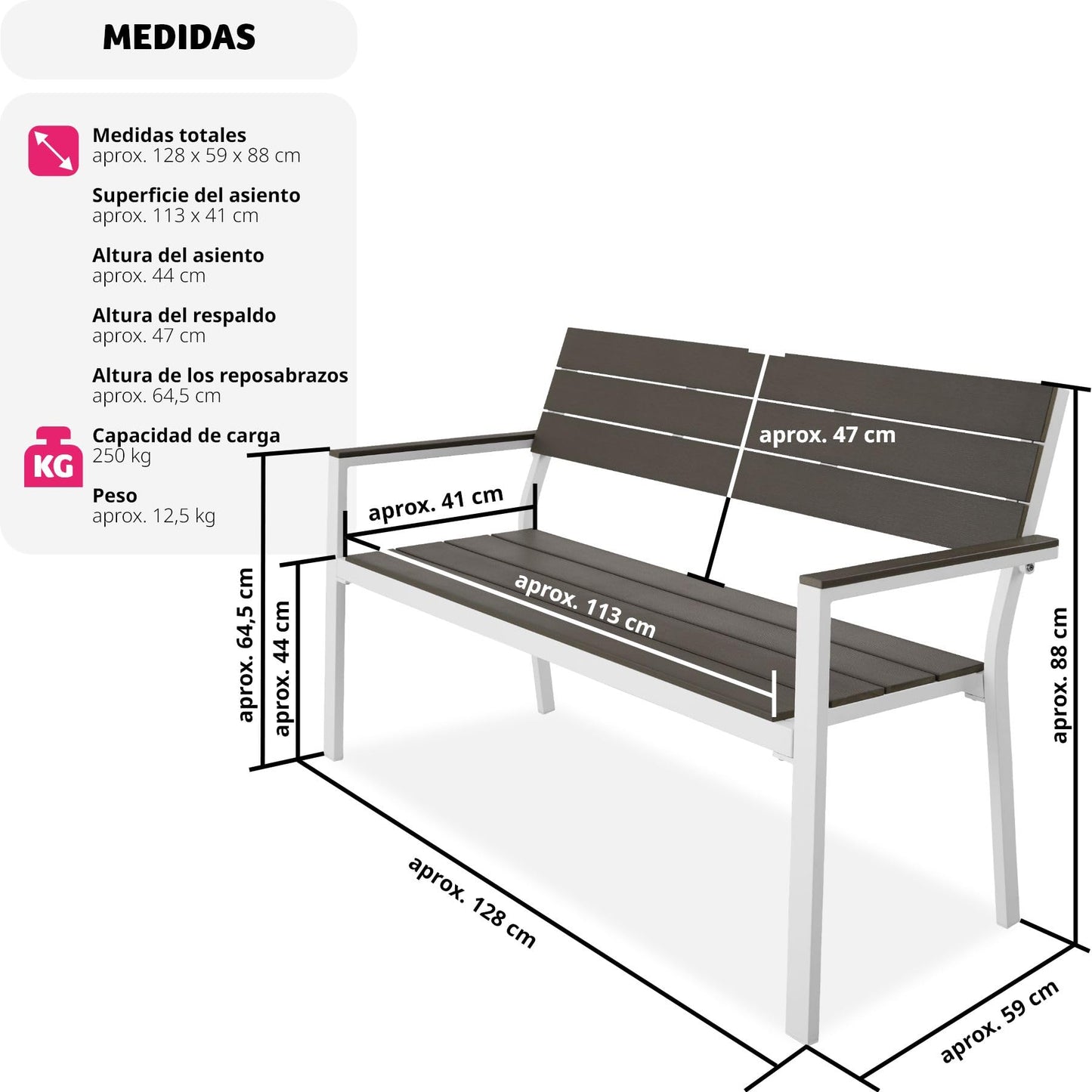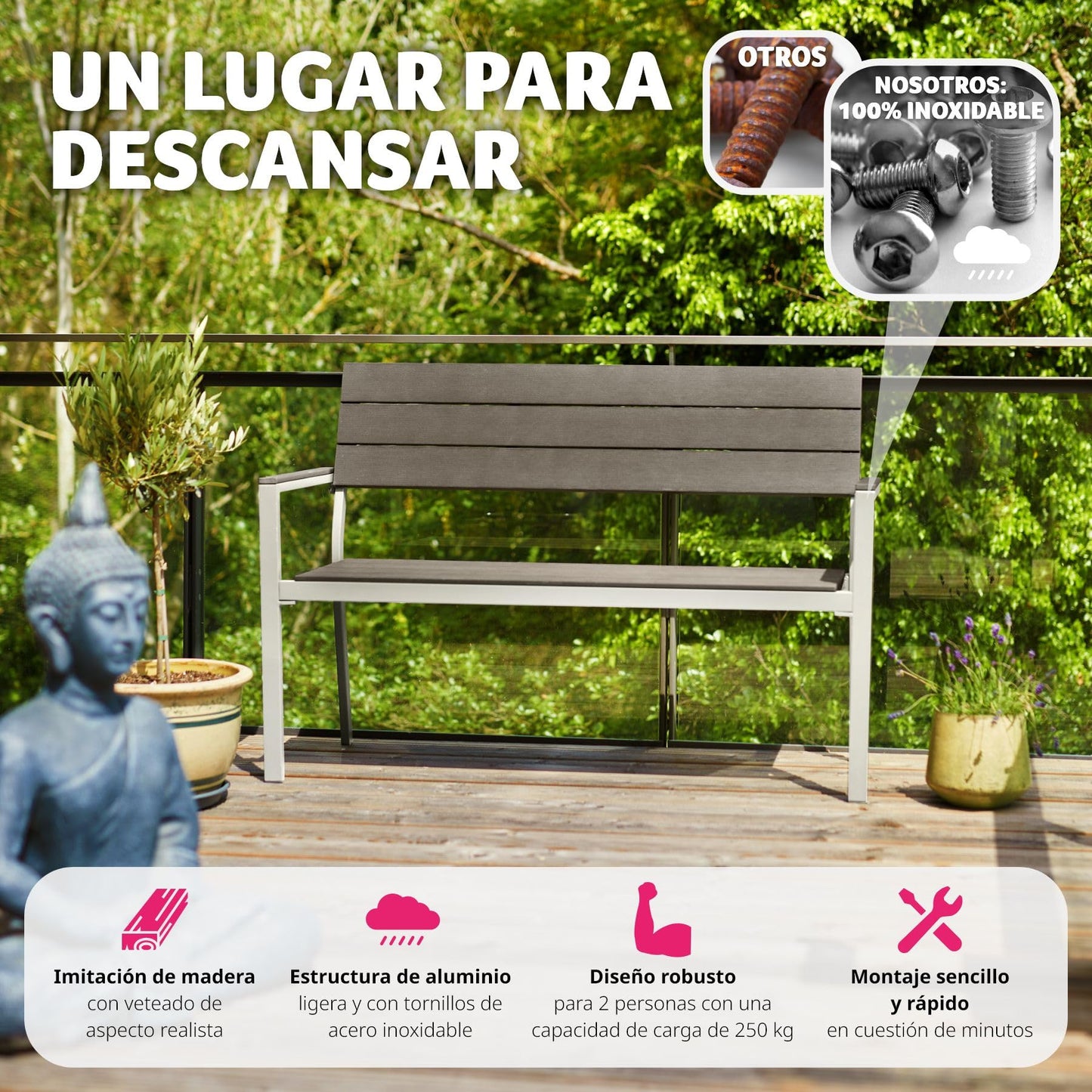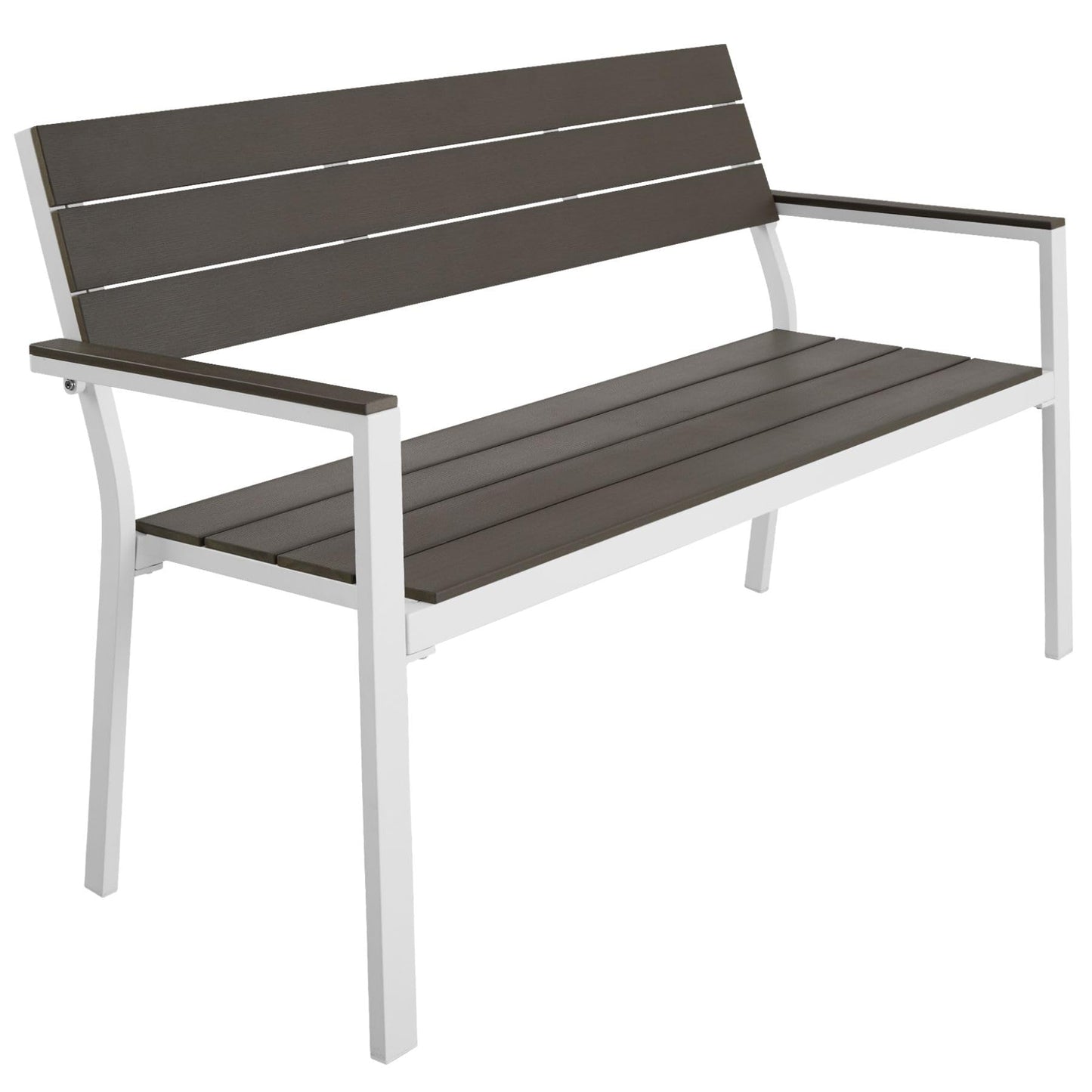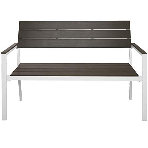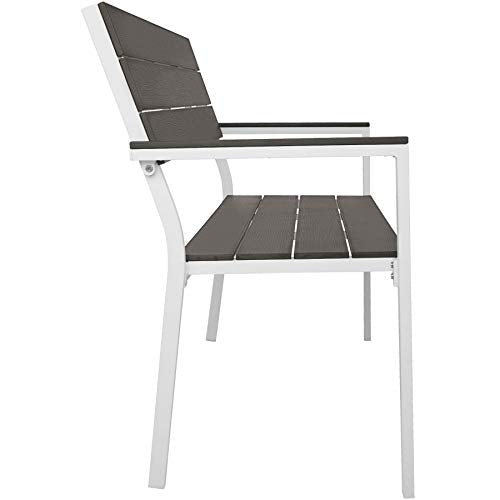 TecTake® Banco de Jardín Moderno para Dos Personas, Estructura de Aluminio Resistente, Banco Jardin, Asiento de Poliestireno Efecto Madera, Ideal para Patio y Terraza Exterior - Oscuro/Blanco