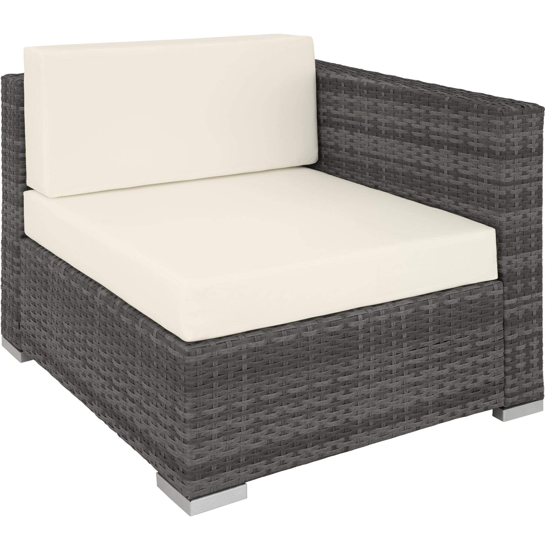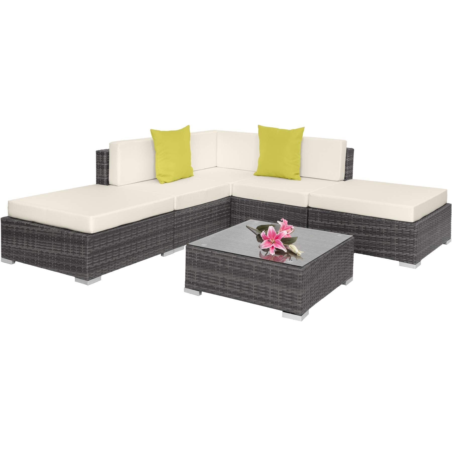 TecTake® Conjunto Jardín en Ratán y Aluminio con Cojines de 10 cm, Conjunto Terraza Resistente a la Intemperie, Muebles Jardín Exterior 3 Sillones, 1 Puf, 1 Mesa con Cristal, Fundas Extraíbles - Gris