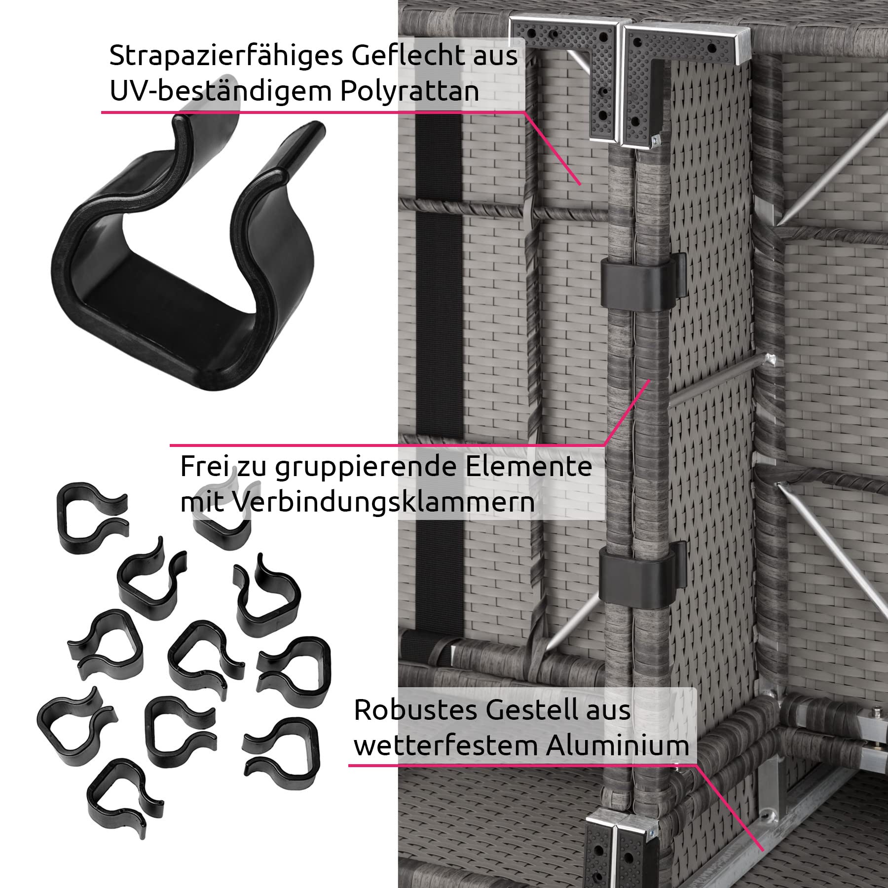 - DISEÑO MODERNO Y VERSÁTIL: Explora la belleza y funcionalidad con nuestro conjunto modular de asientos y mesa de poliratán de calidad superior, ideal para cualquier espacio al aire libre como jardín, patio o salón. Su diseño ajustable, junto con su estilo moderno y elegante, lo convierte en una adición excepcional a tu hogar.