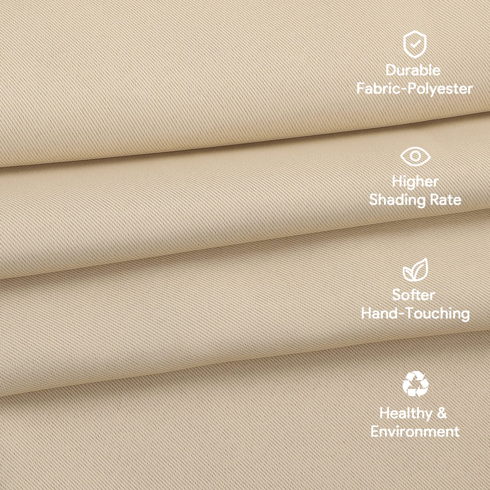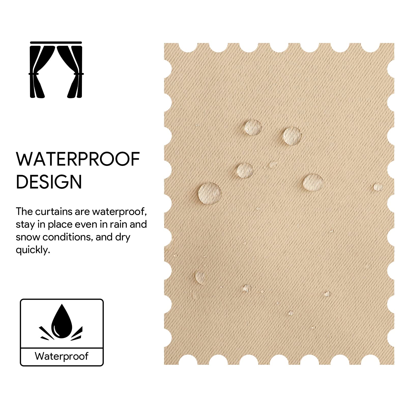 - 【Bloqueo solar e impermeabilización】 Estos cortinas terraza exterior beige bloquean la mayor parte del sol, lo protegen del sol y lo mantienen fresco en verano. El cortina opaca con ojal hecho de tela impermeable evita la lluvia y se puede colgar incluso en días lluviosos y con nieve.