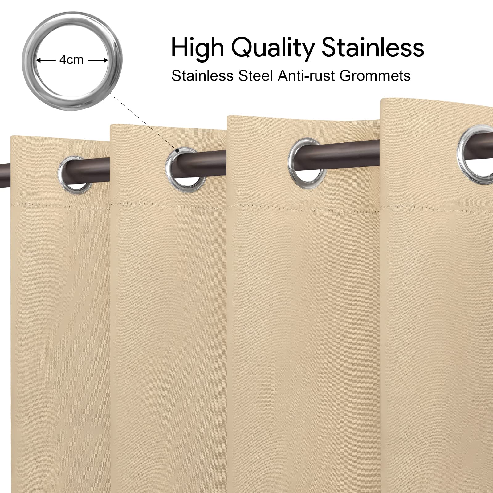 Cortinas Terraza Exterior, Cortina para Exteriores Impermeable con Anillos, Cortinas Exterior Terraza Adecuada para Balcones, Pérgolas y Terrazas (132 * 215 cm, Beige)