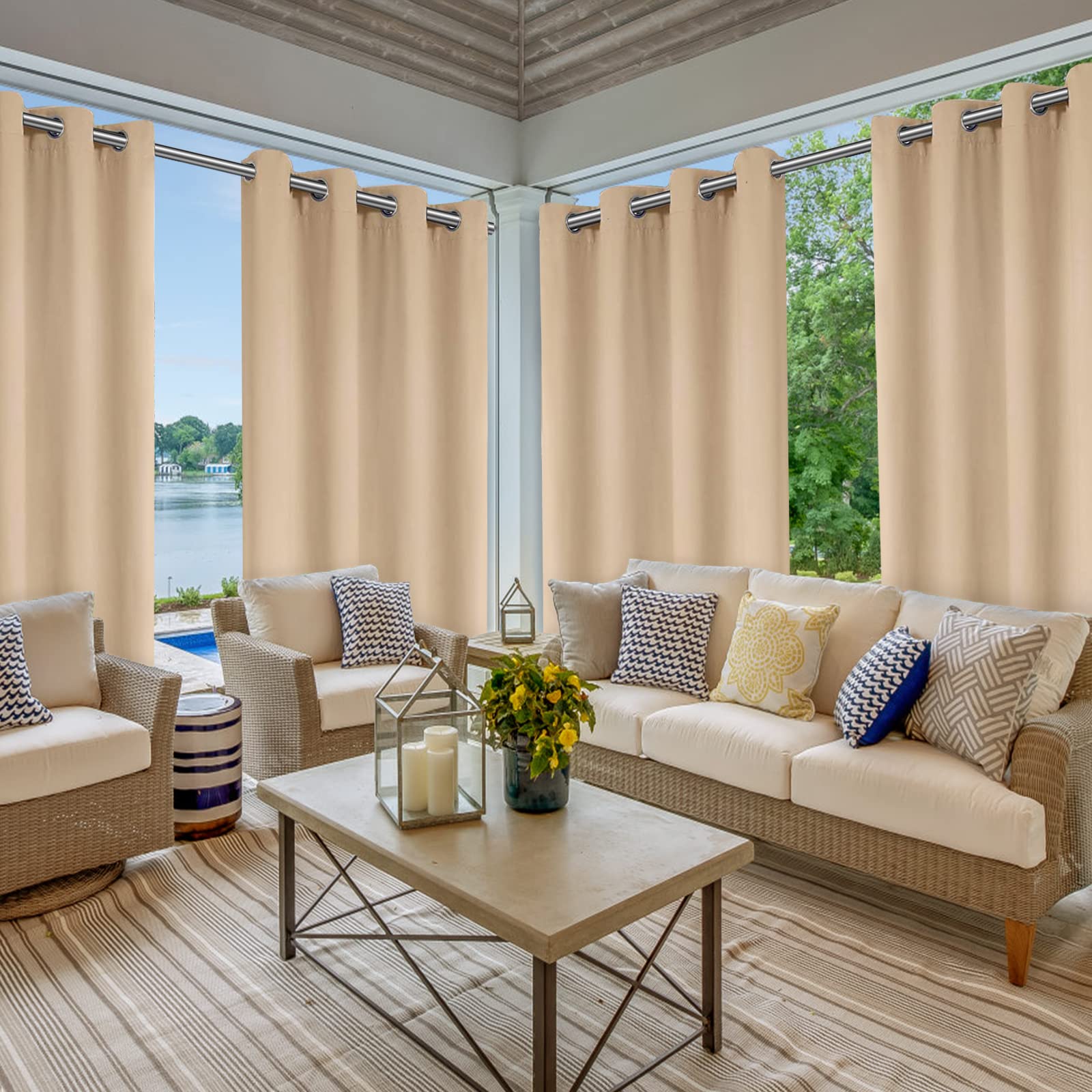 - 【Las Mejores Telas Impermeables】Cada juego incluye 1 cortinas terraza exterior impermeable. Cada cortina para exteriores beige mide 132cm x 215cm (52W x 84.6"L). El cortinas de exterior está hecho de tela 100% poliéster duradera, suave y gruesa con el mismo color en la parte delantera y trasera. La tela es duradera, resistente a la intemperie y está disponible en una variedad de colores.