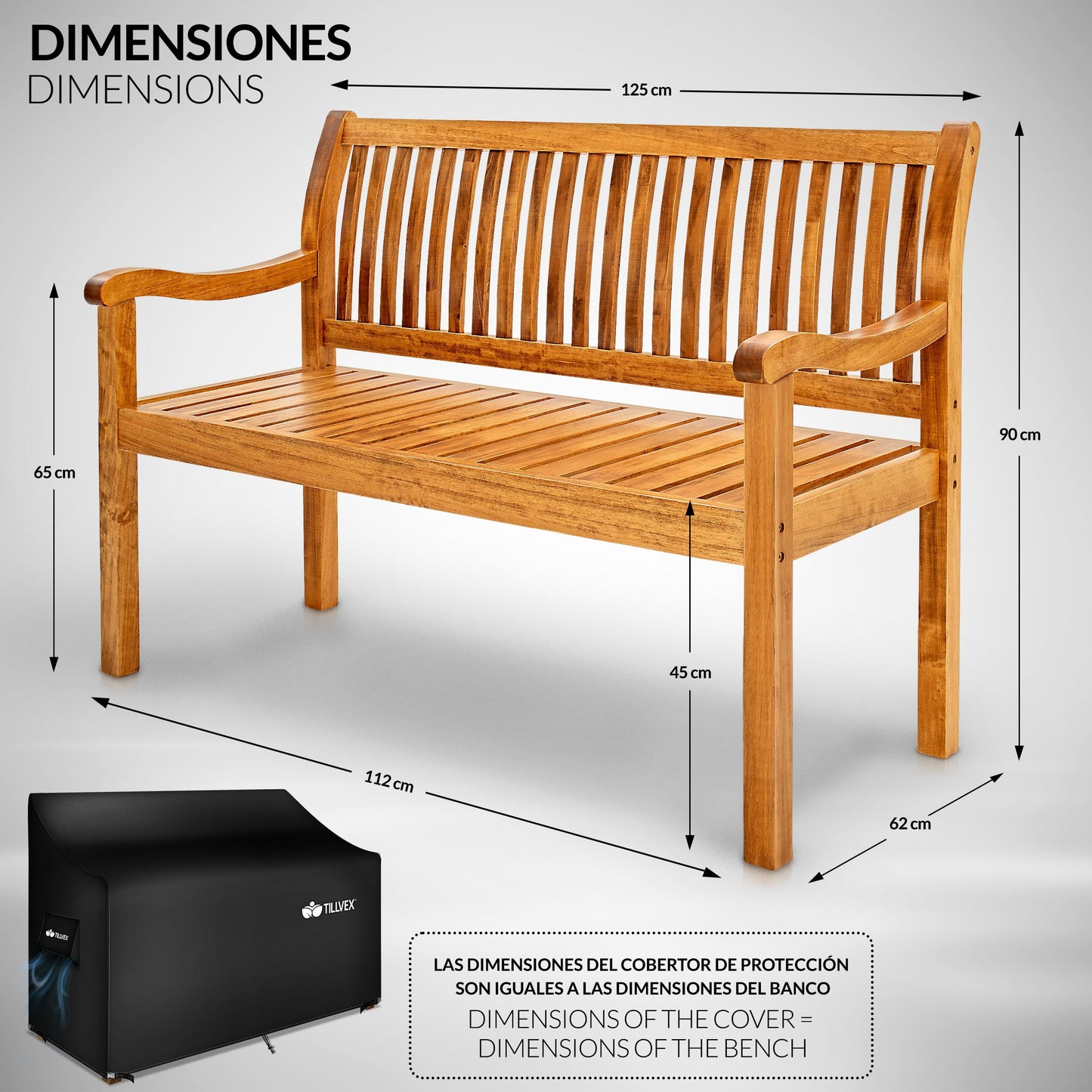 - MADERA MACIZA: El banco de jardín tillvex está hecho de madera maciza natural y de alta calidad. Esto hace que el banco de jardín sea extremadamente resistente a la humedad y al agrietamiento.