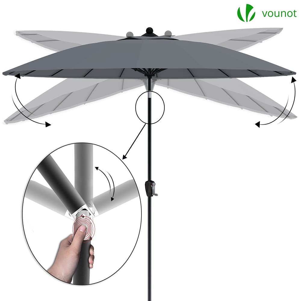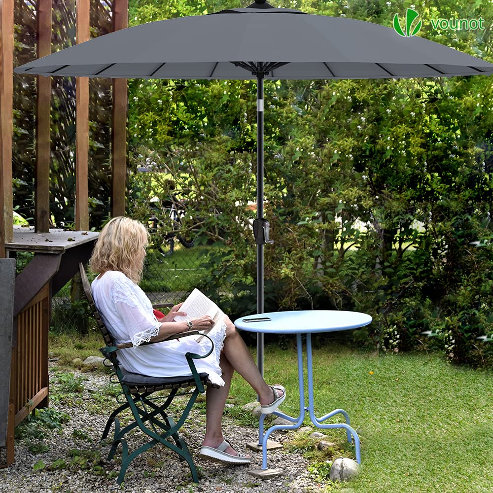 VOUNOT 270 cm Shanghai Sombrilla Jardín, Parasol Terraza Inclinable con Manivela, Protección UV para Patio, Jardín, Piscina, Exterior, Gris