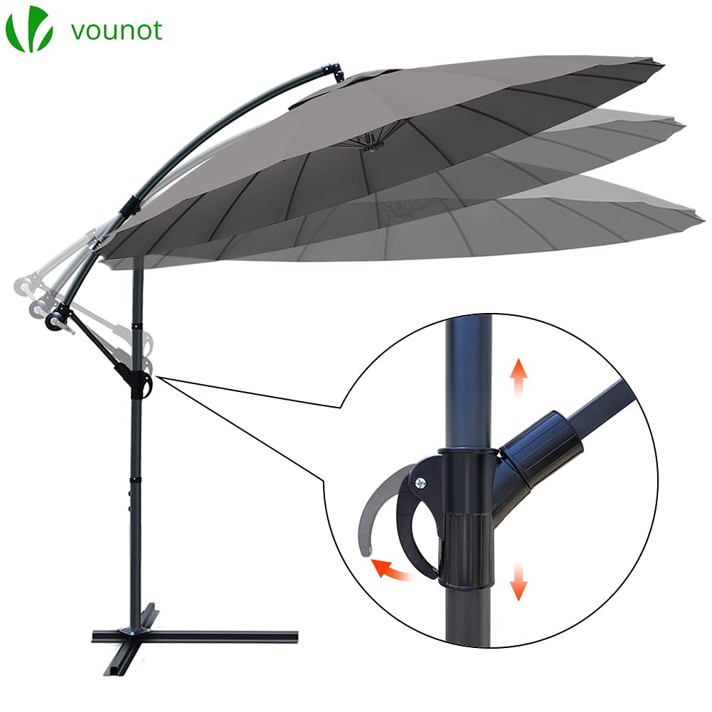 VOUNOT 300 cm Shanghai Parasol Excentrico, Sombrilla Jardín con Manivela y Funda Protectora Protección UV, Gris